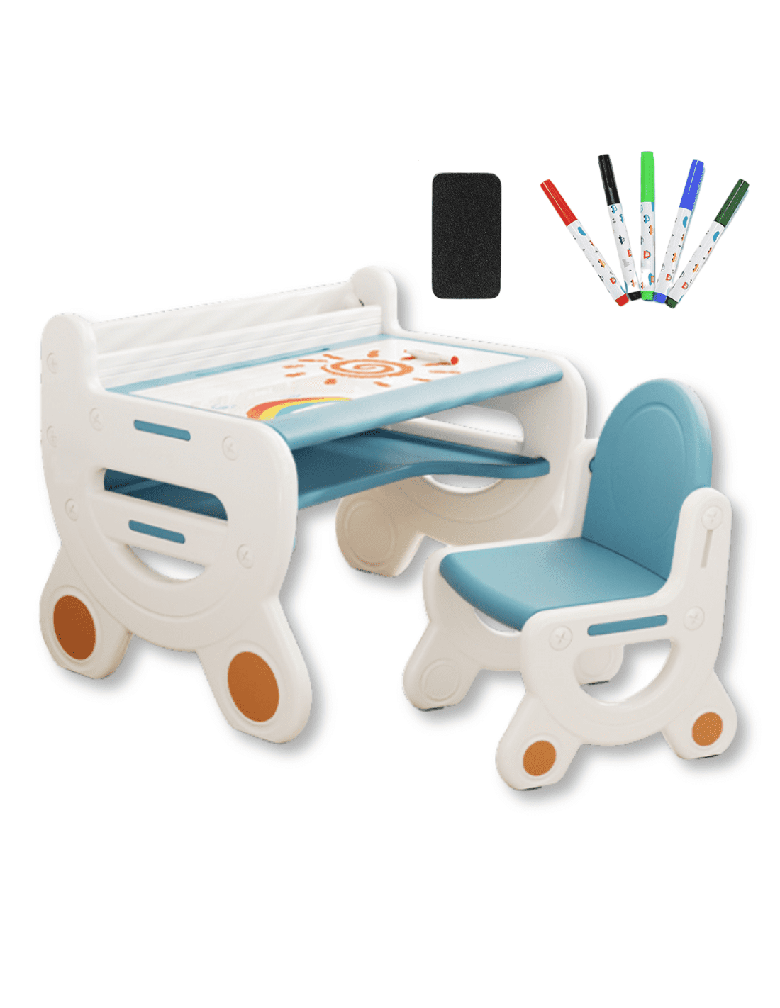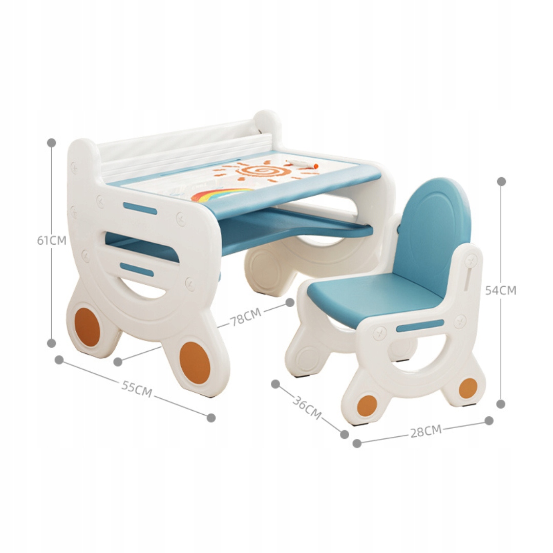 Der im Set enthaltene Stuhl ist ergonomisch geformt und optimal auf die Körpergröße kleiner Kinder abgestimmt. Die stabile Sitzhöhe und die Rückenlehne fördern eine gesunde Haltung – ideal für Mal-, Spiel- und Lernphasen. Mehr Komfort bedeutet auch mehr Aufmerksamkeit und bessere Entwicklung des Kindes.