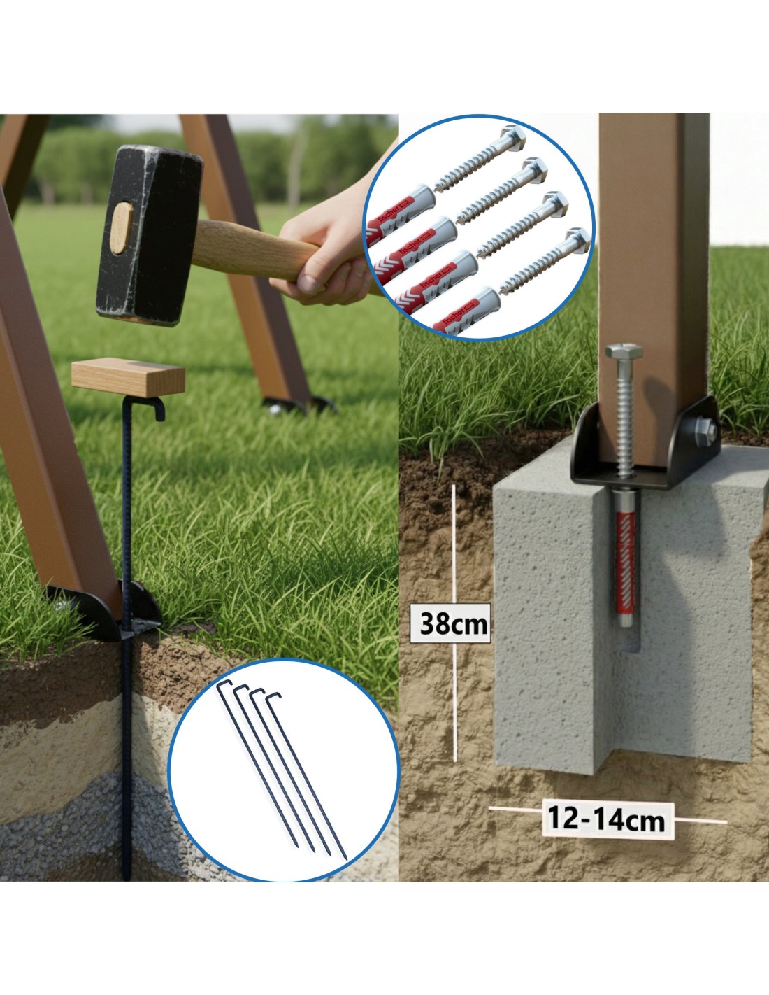 • Erdanker – ideal für die Befestigung im Garten oder auf dem Rasen. Sie können diese hier separat dazubestellen.