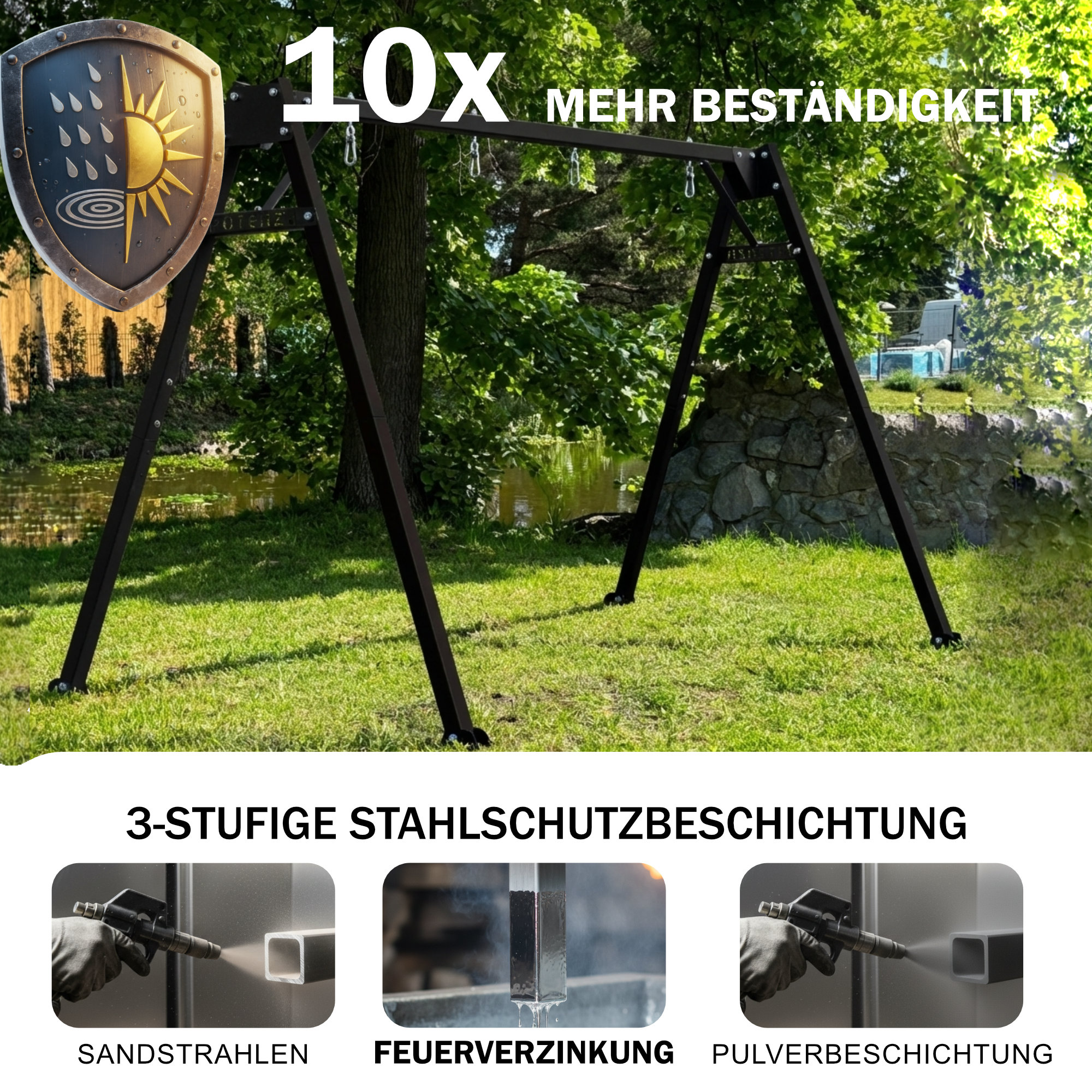 Im Gegensatz zu einfachen Beschichtungen werden dabei sowohl die Außenflächen als auch das Innere der Profile geschützt. Das ist besonders wichtig, denn Feuchtigkeit gelangt oft in das Innere von Stahlkonstruktionen. So kann sich Rost nicht im Inneren ausbreiten, und das Gestell bleibt langfristig stabil, sicher und sieht jahrelang gut aus.