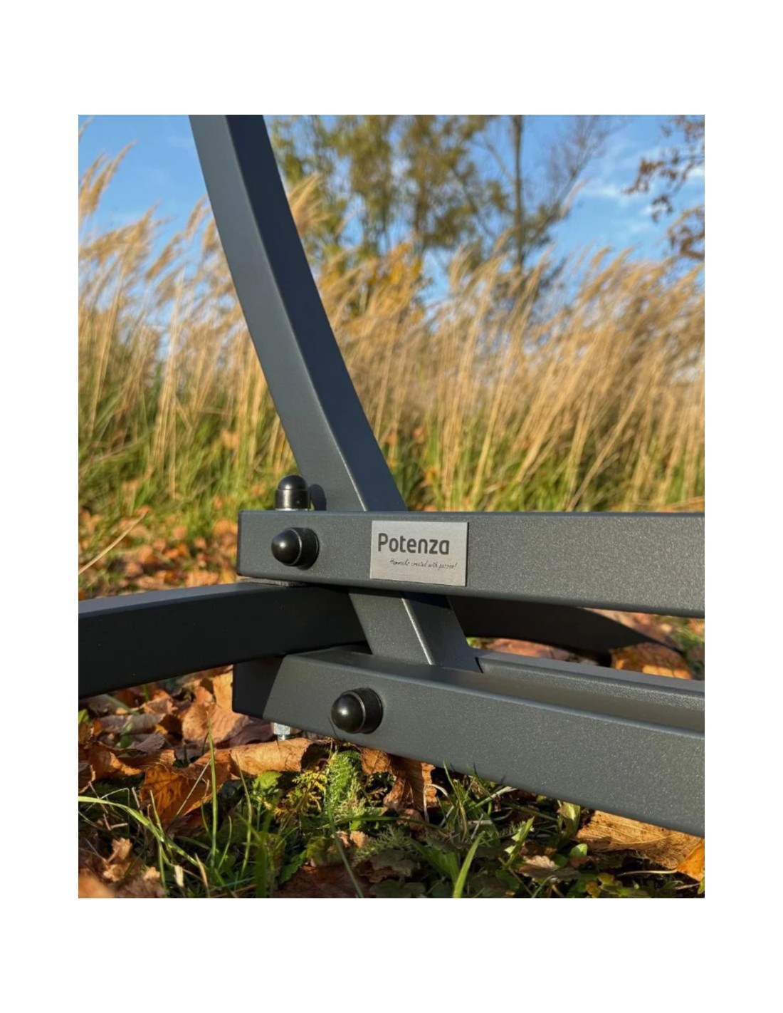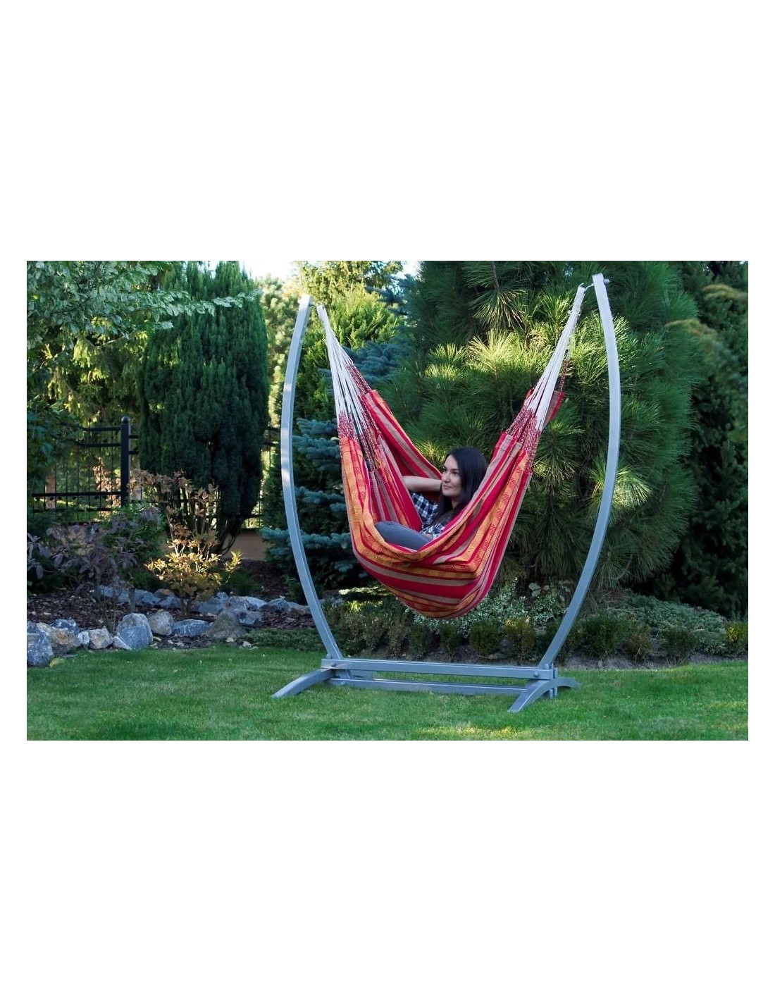 Ein robustes Gazela Stahlgestell sorgt für sicheren Halt und angenehme Entspannung im Hängestuhl.