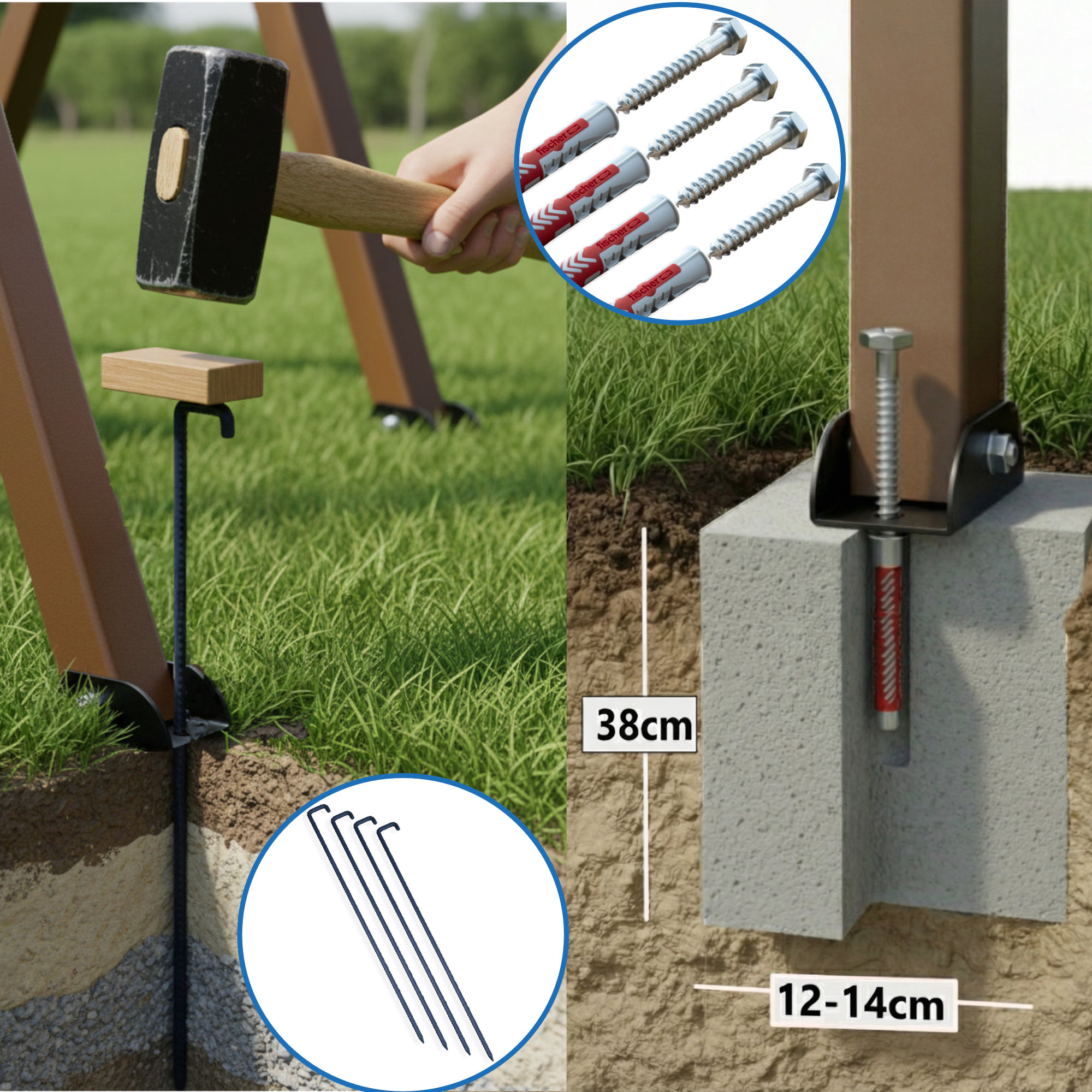 • Erdanker – ideal für die Befestigung im Garten oder auf dem Rasen. Sie können diese hier separat dazubestellen.