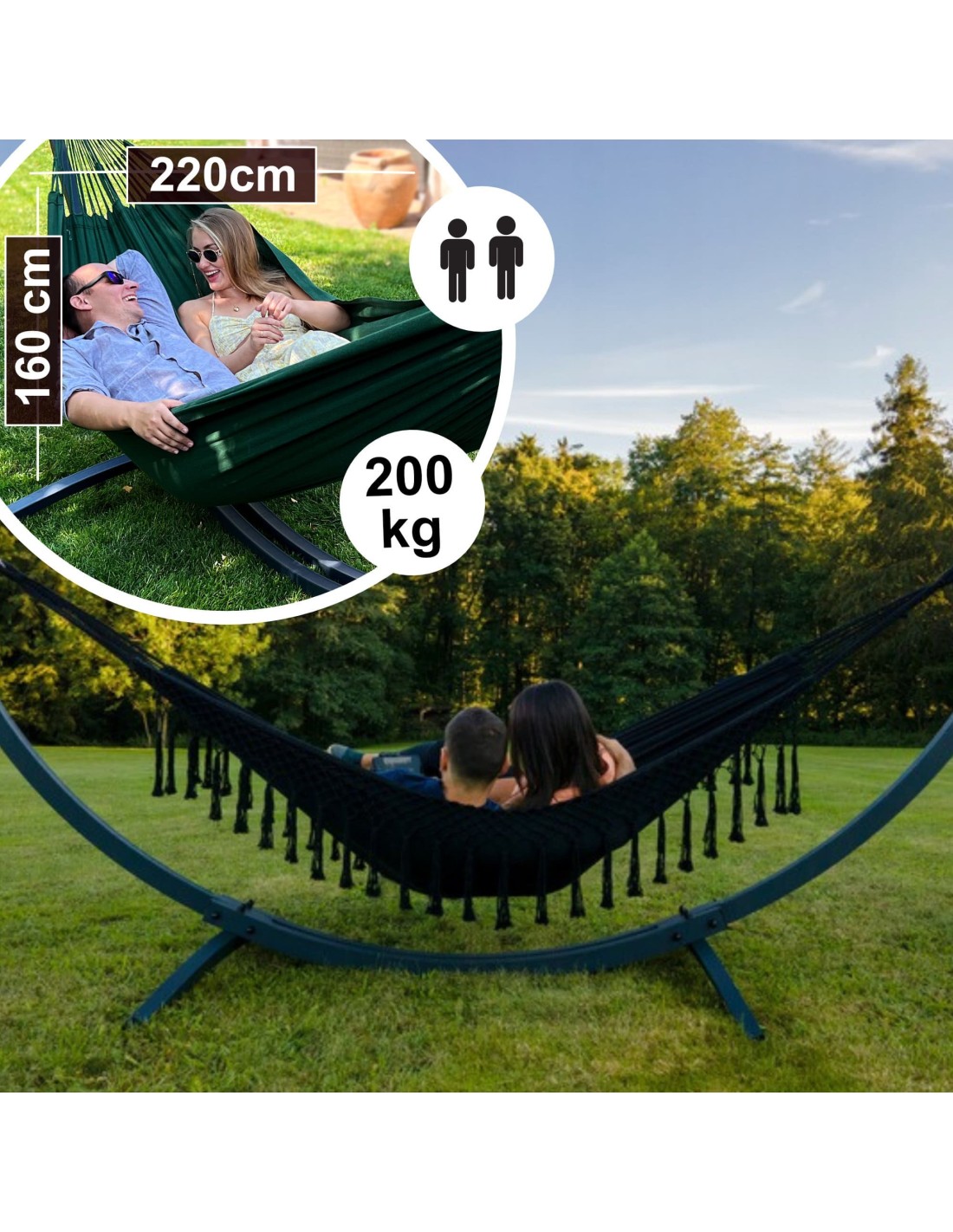 • Miniatura - Santia Boho Hängematte mit Gestell für 2 Personen 220x160cm - Outdoor & Garten (Czarny) Czarny