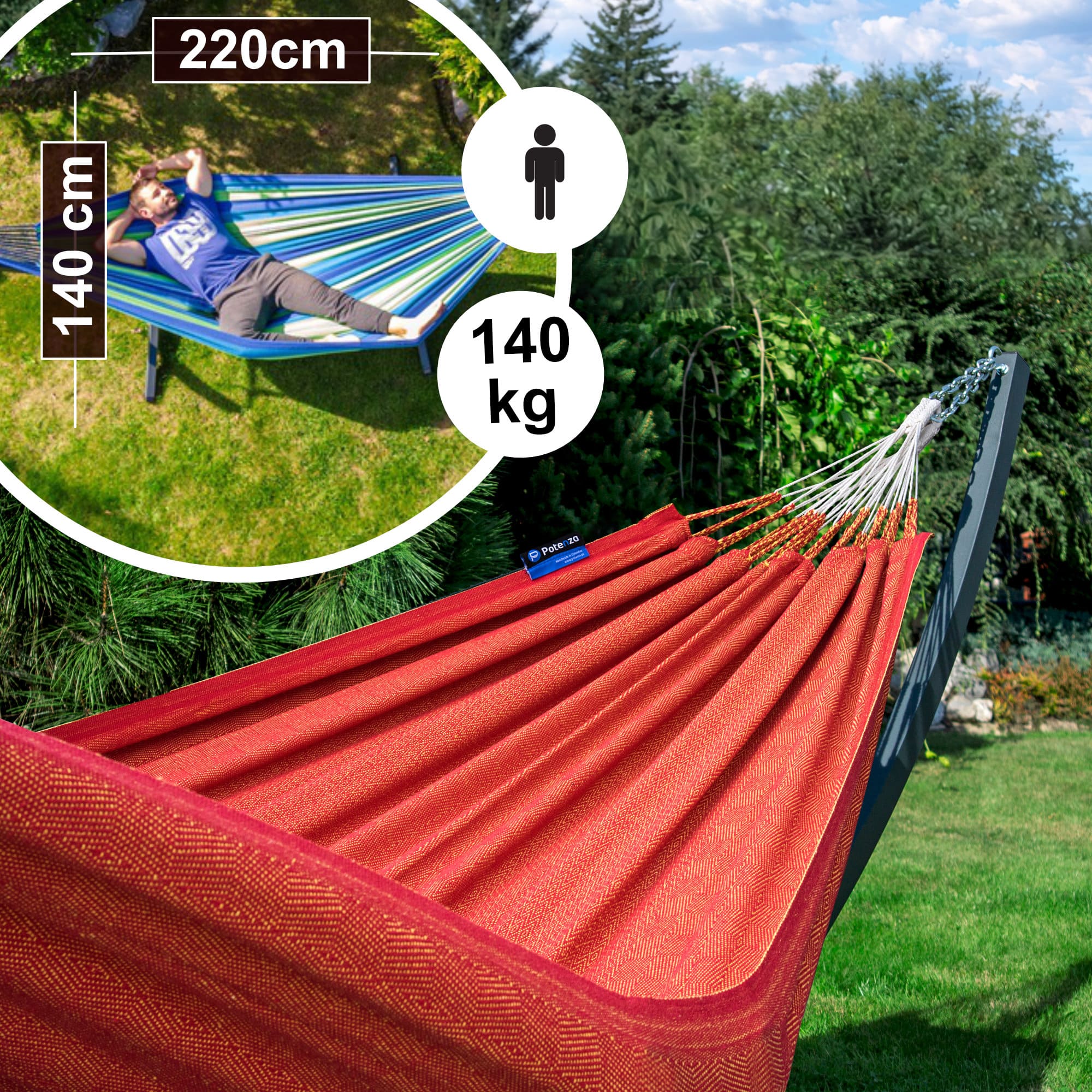 Große Gartenhängematte mit einer extra großen Liegefläche von 220×140cm und einer Belastbarkeit von bis zu 140kg