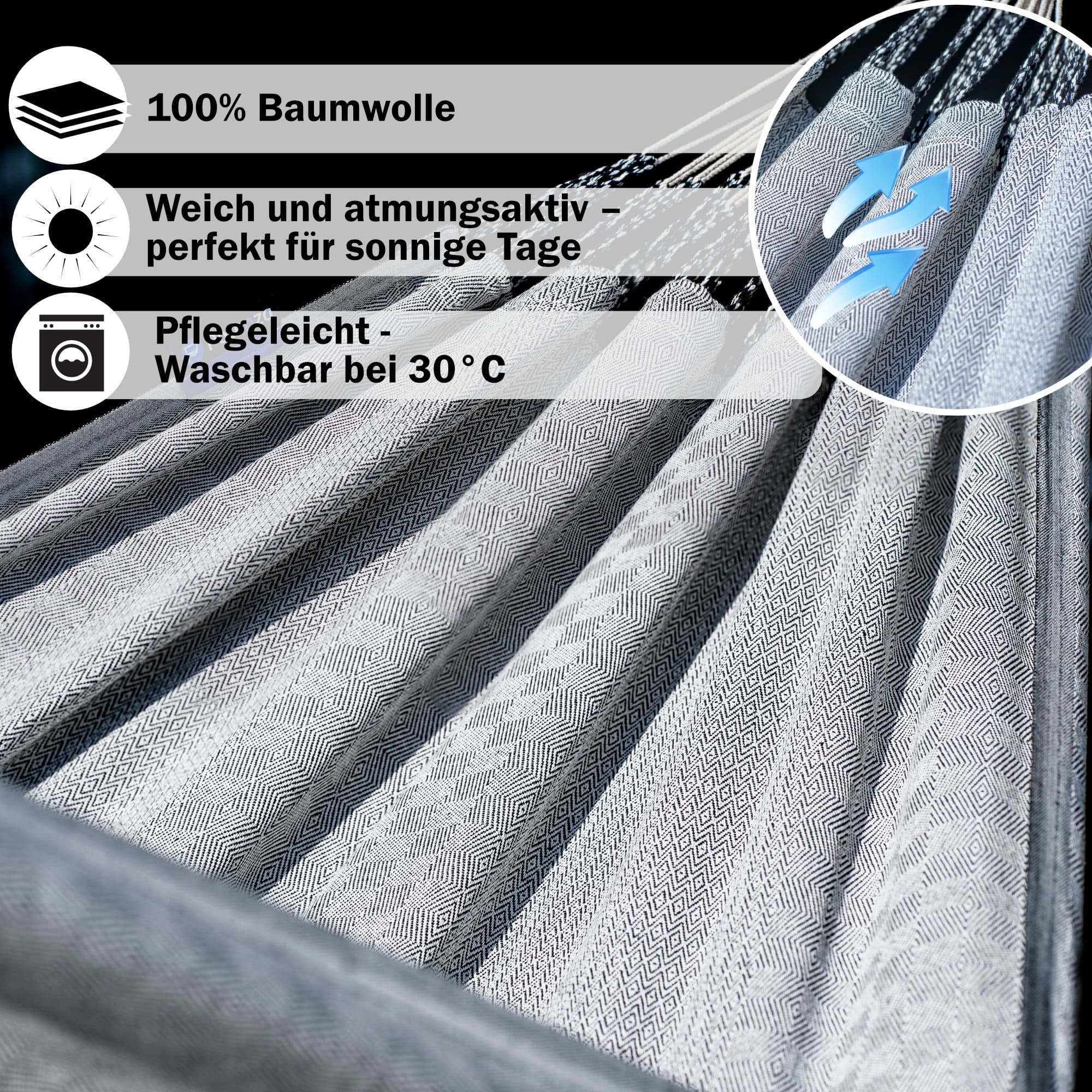 • Miniatura - Medelin (220x140cm) Hängematte mit Gestell, Hängemattengestell aus Stahl 370cm (B&W) B&W
