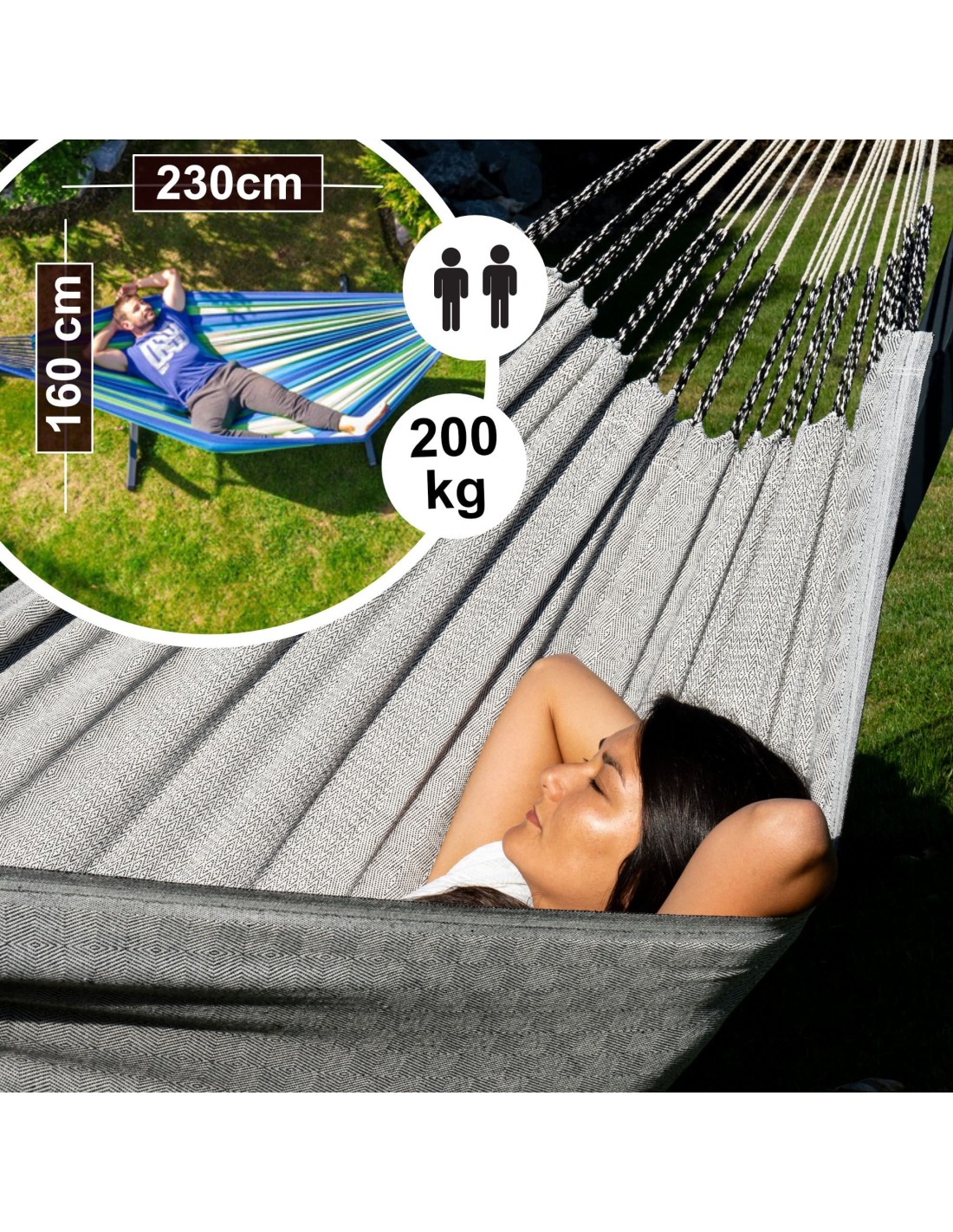 Große Gartenhängematte mit einer extra großen Liegefläche von 230×160cm und einer Belastbarkeit von bis zu 200 kg