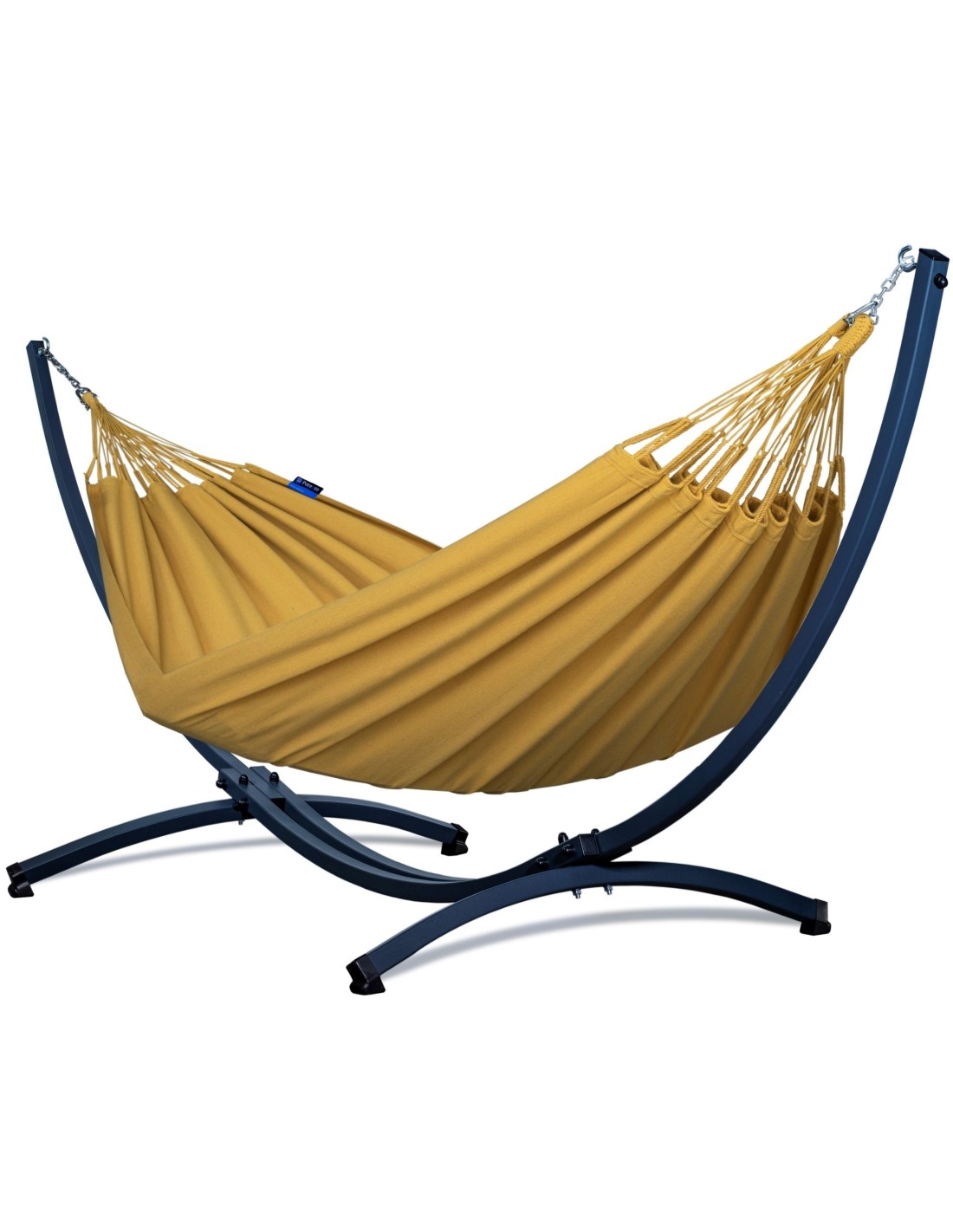 Die weit gespannten Gestellarme sorgen dafür, dass die gesamte Liegefläche optimal genutzt werden kann. Durch die Spannung der Aufhängung kannst du selbst beeinflussen, wie viel Platz dir zur Verfügung steht – je großzügiger gespannt, desto mehr Raum für zwei Personen.