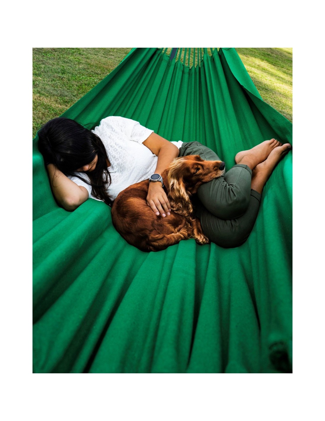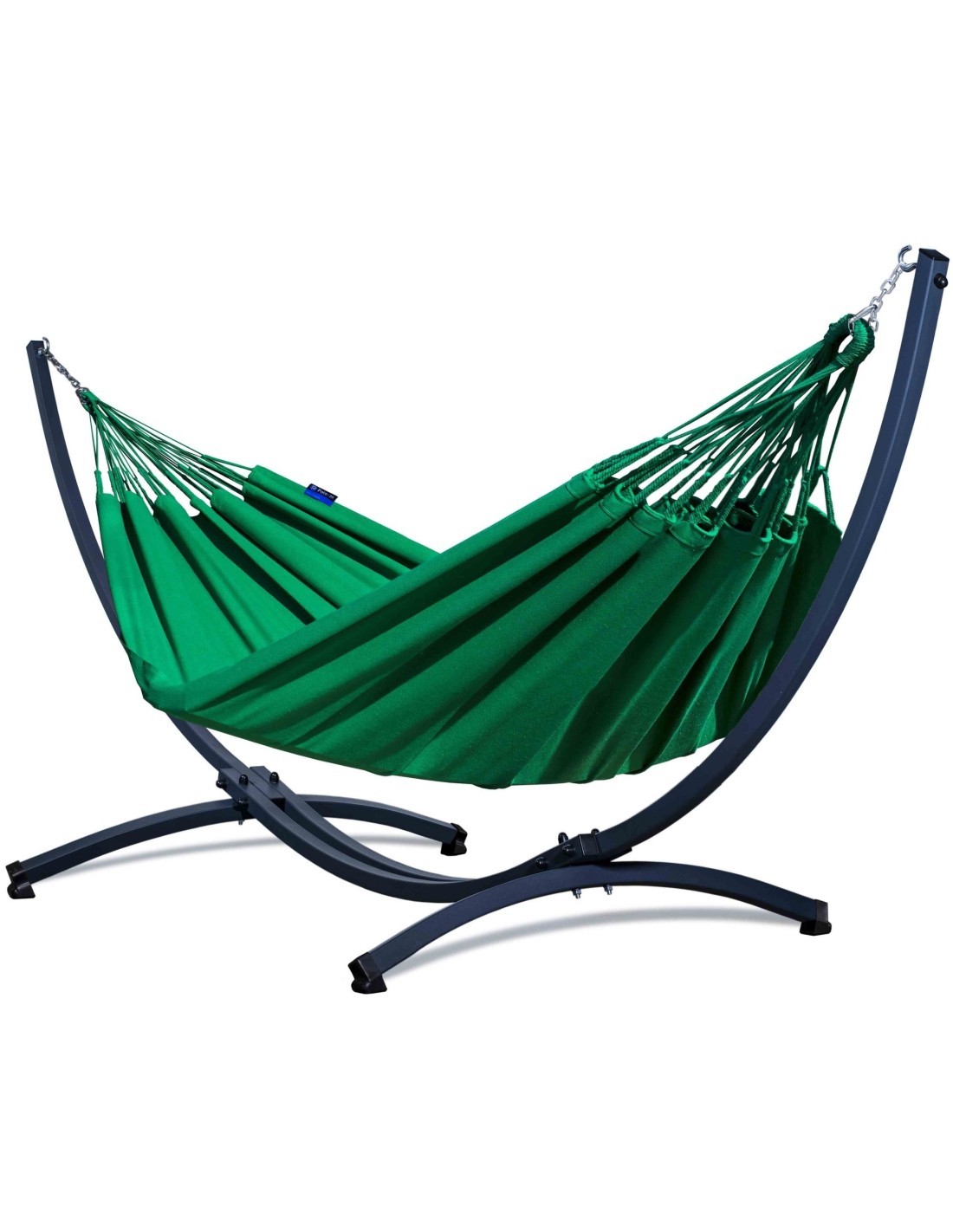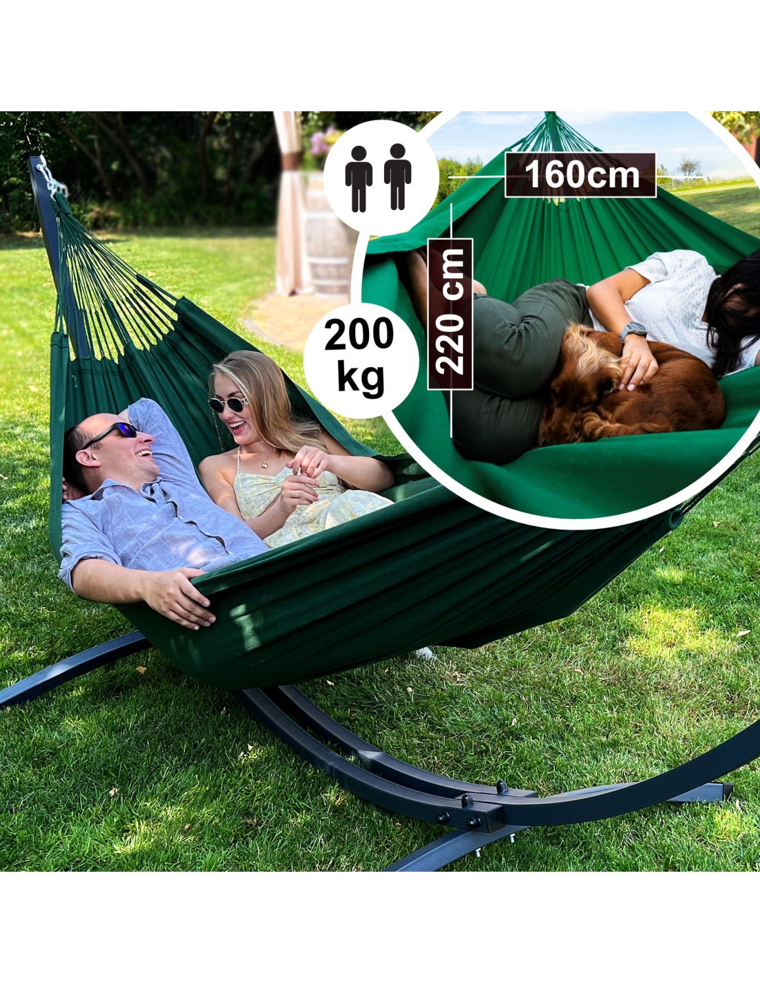 Die weit gespannten Gestellarme sorgen dafür, dass die gesamte Liegefläche optimal genutzt werden kann. Durch die Spannung der Aufhängung kannst du selbst beeinflussen, wie viel Platz dir zur Verfügung steht – je großzügiger gespannt, desto mehr Raum für zwei Personen.