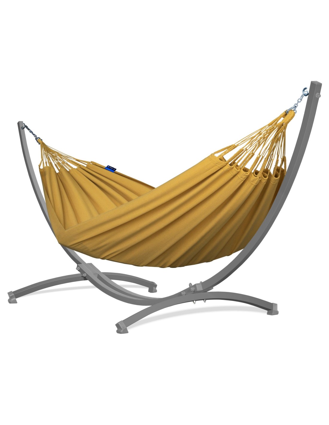 Die weit gespannten Gestellarme sorgen dafür, dass die gesamte Liegefläche optimal genutzt werden kann. Durch die Spannung der Aufhängung kannst du selbst beeinflussen, wie viel Platz dir zur Verfügung steht – je großzügiger gespannt, desto mehr Raum für zwei Personen.