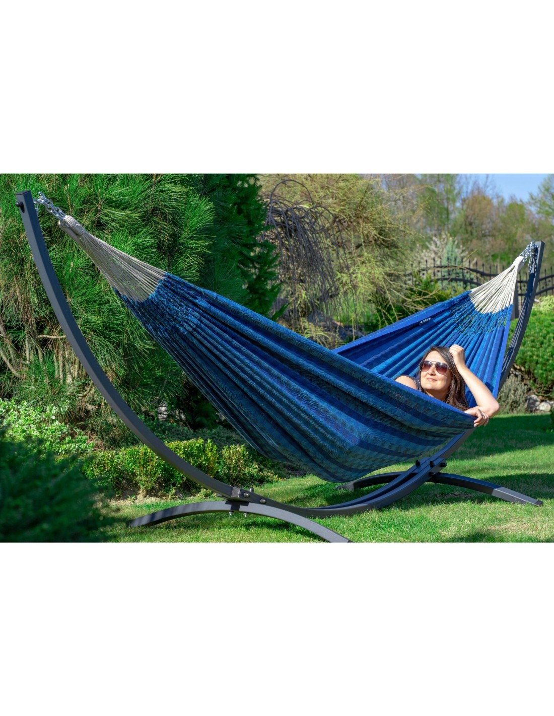 Ein robustes Stahlgestell sorgt für sicheren Halt und angenehme Entspannung – auch für bis zu zwei Personen.