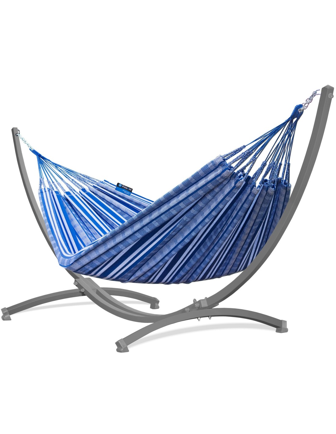 • Miniatura - Pereira 220x140cm Hängematte mit Gestell, Hängemattengestell aus Stahl Feuerverzinkt oder Pulverbeschichtet 370cm (Blue) Blue