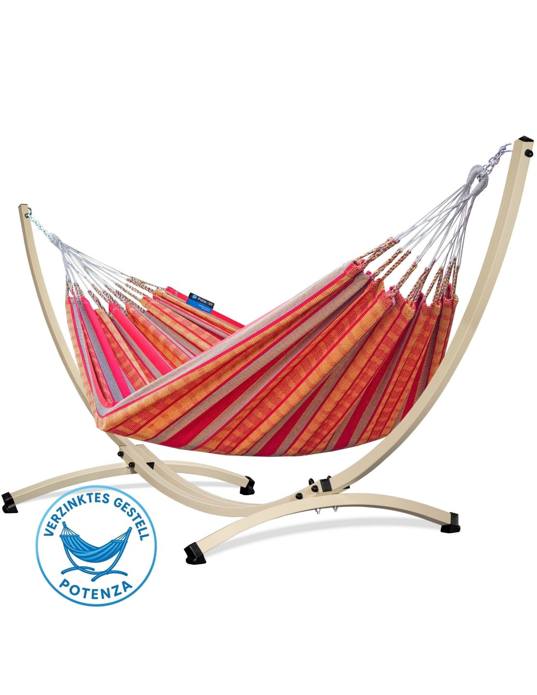 Pereira 220x140cm Hängematte mit Gestell, Hängemattengestell aus Stahl Feuerverzinkt oder Pulverbeschichtet 370cm