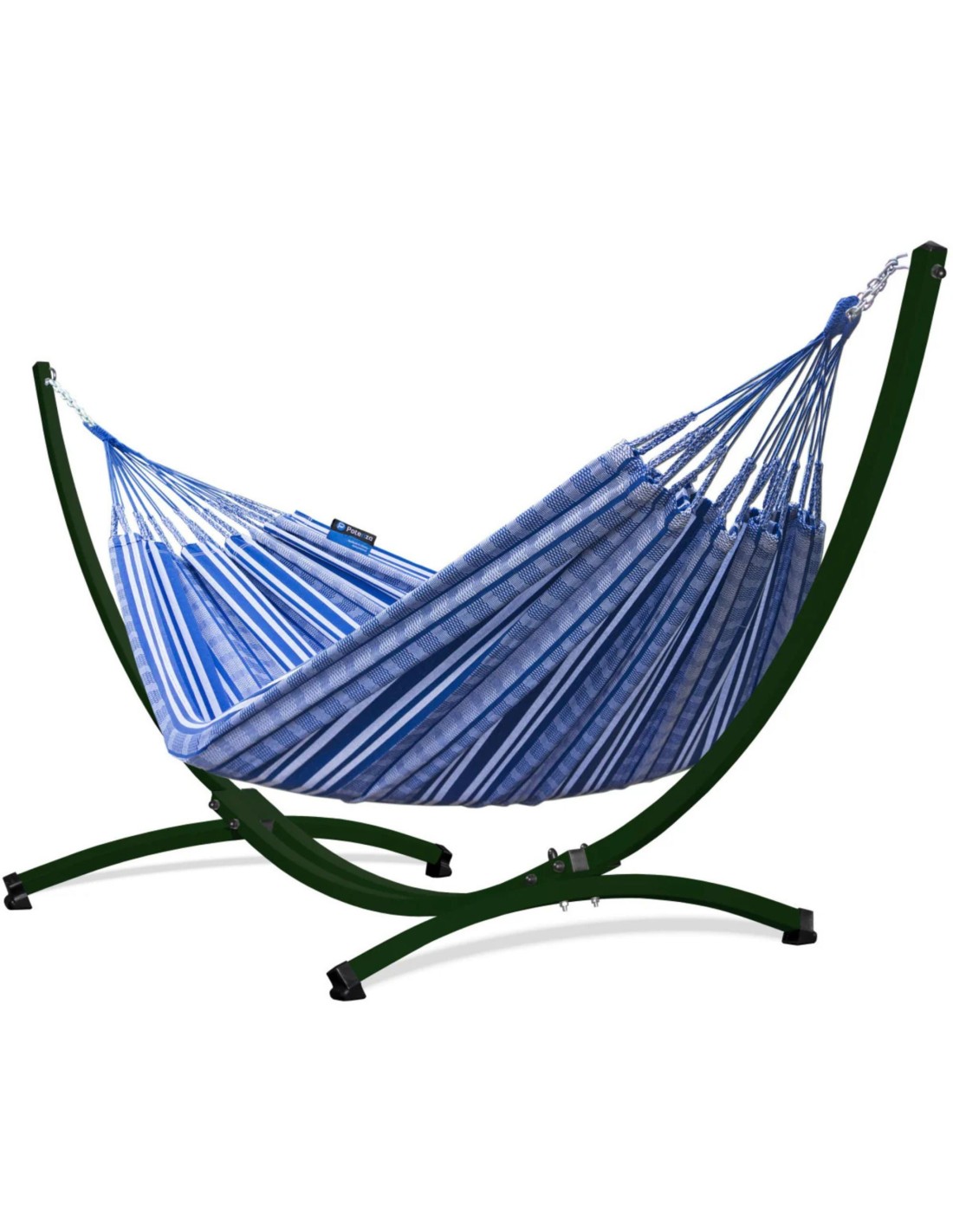 • Miniatura - Pereira 230x160cm Hängematte mit Gestell, Hängemattengestell aus Stahl Feuerverzinkt oder Pulverbeschichtet 370cm (Blue) Blue