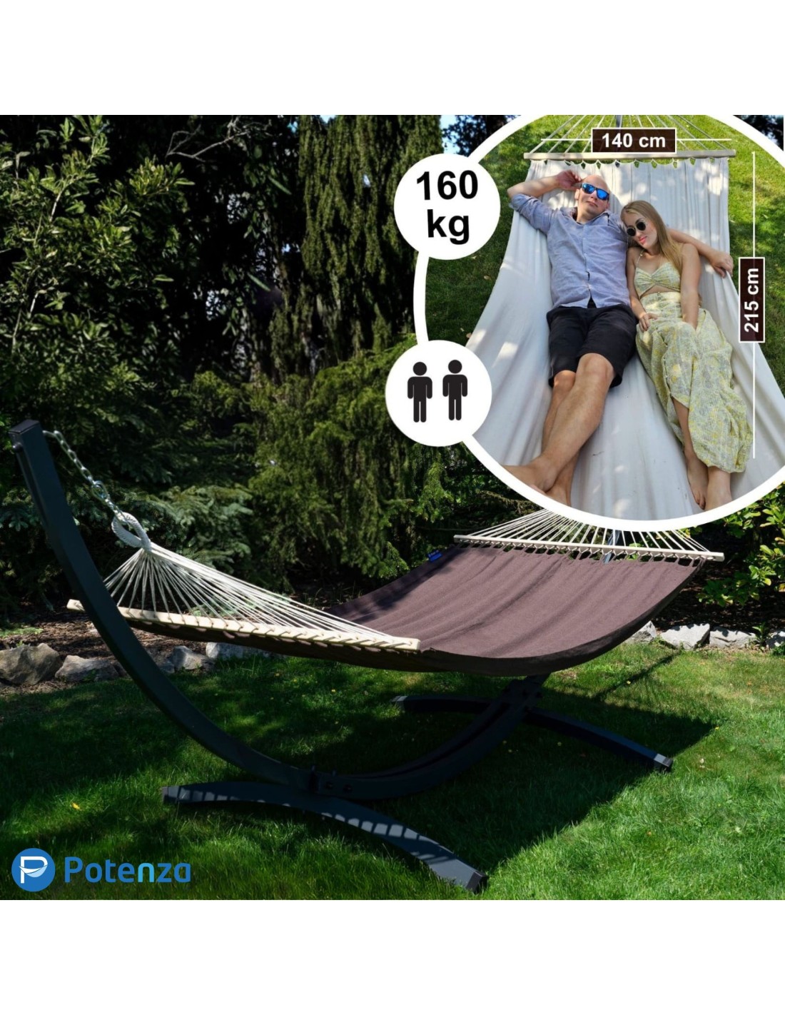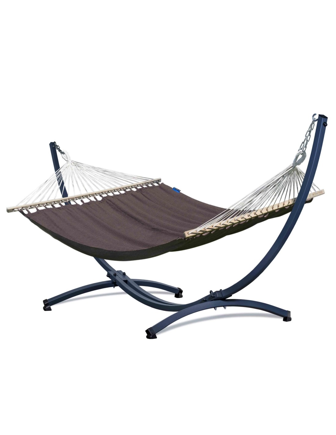Die weit gespannten Gestellarme sorgen dafür, dass die gesamte Liegefläche optimal genutzt werden kann. Durch die Spannung der Aufhängung kannst du selbst beeinflussen, wie viel Platz dir zur Verfügung steht – je großzügiger gespannt, desto mehr Raum für zwei Personen.