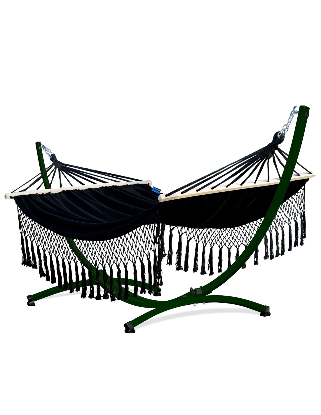 Die weit gespannten Gestellarme sorgen dafür, dass die gesamte Liegefläche optimal genutzt werden kann. Durch die Spannung der Aufhängung kannst du selbst beeinflussen, wie viel Platz dir zur Verfügung steht – je großzügiger gespannt, desto mehr Raum für zwei Personen.