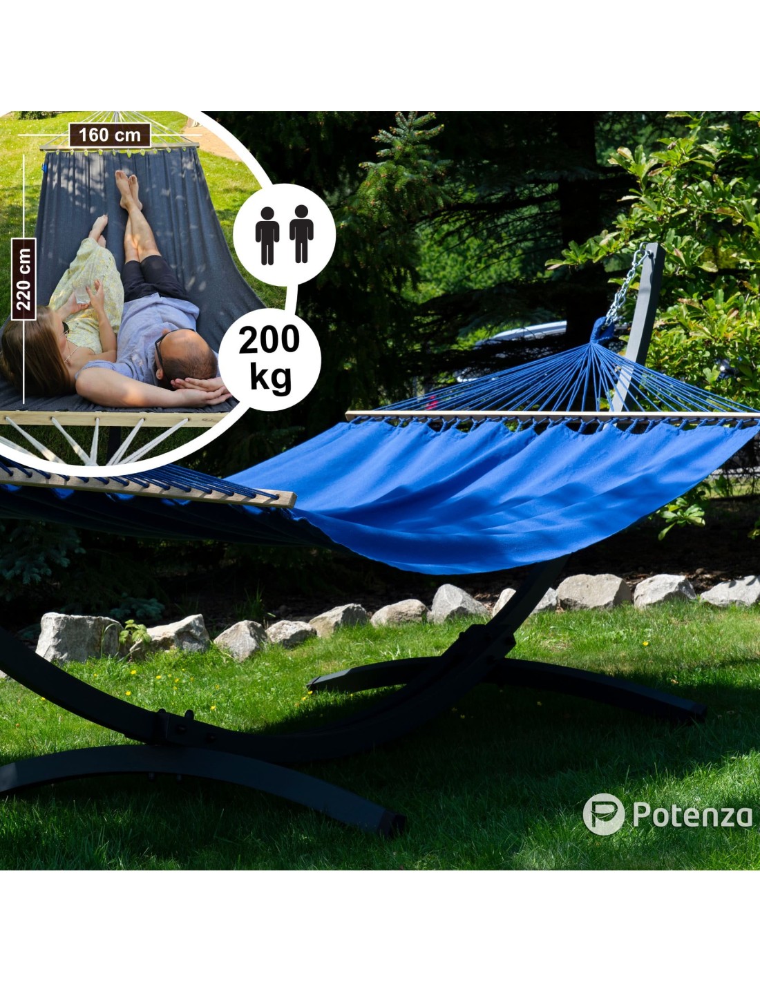 • Miniatura - Merida Stabhängematte mit Gestell, Hängematte 215x160cm, Hängemattegestell aus Aluminium oder Stahl (Blue) Blue