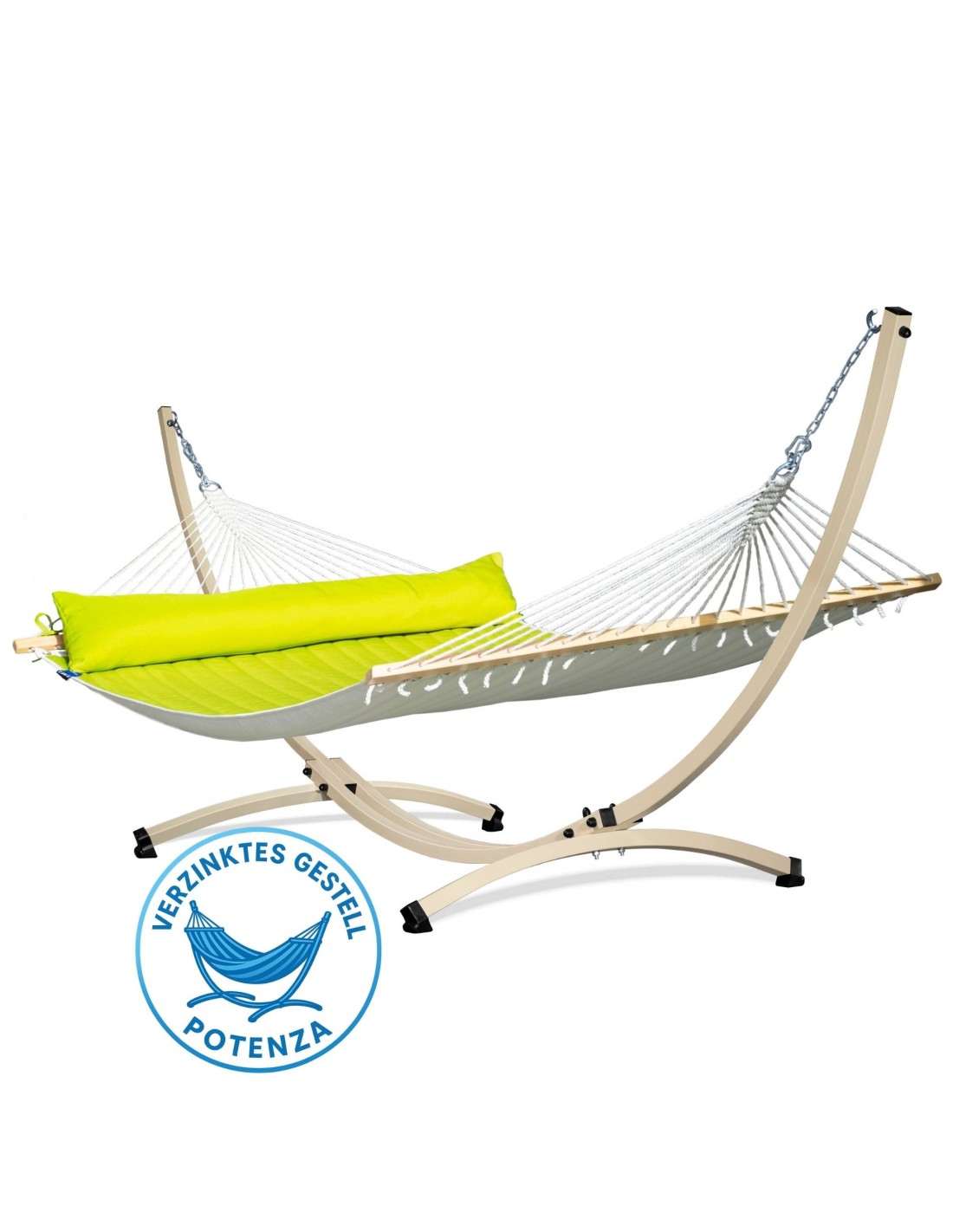• Miniatura - Panama Stabhängematte mit Gestell, Hängematte 215x140cm, Hängemattegestell aus Aluminium oder Stahl (Lime) Lime