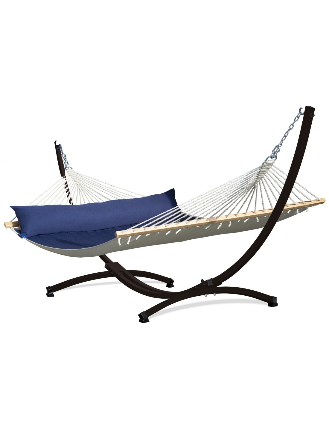 Die weit gespannten Gestellarme sorgen dafür, dass die gesamte Liegefläche optimal genutzt werden kann. Durch die Spannung der Aufhängung kannst du selbst beeinflussen, wie viel Platz dir zur Verfügung steht – je großzügiger gespannt, desto mehr Raum für zwei Personen.