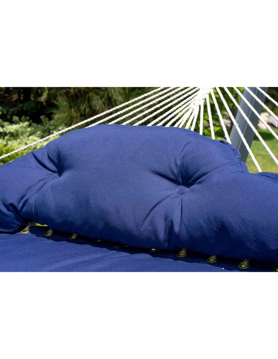 Träumen Sie von einem Bett unter einer Wolke? Entspannen Sie sich im Freien in einer weichen Hängematte. Die Hängematte ist mit einer großen Menge an Füllmaterial gefüllt, wodurch sie weich und sehr bequem zum Liegen ist. Außerdem wird eine große Menge Seil verwendet, damit Sie Ihr Körpergewicht in der Hängematte angemessen verteilen können. Außerdem hat die Hängematte ein Kissen, damit man sich noch mehr wie im Bett fühlt. Eine Hängematte mit Gestell ist ein tolles Gartenmöbelstück