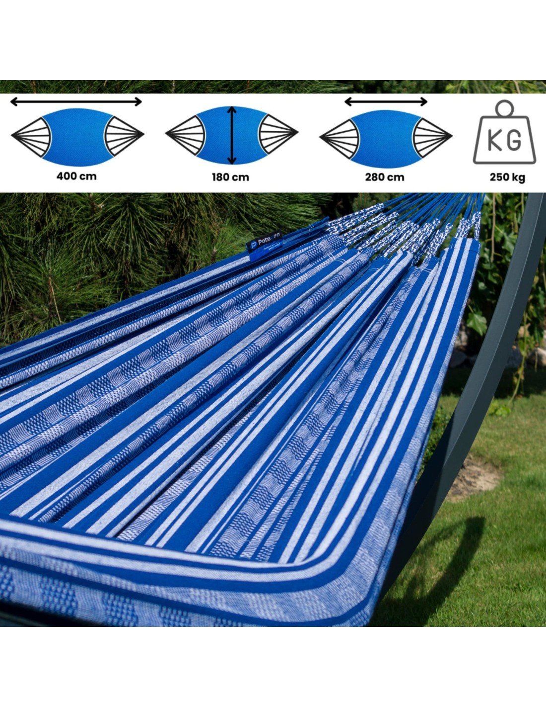 Große Gartenhängematte mit einer extra großen Liegefläche. Sie bietet bequem Platz für zwei Personen, oder sogar noch mehr.