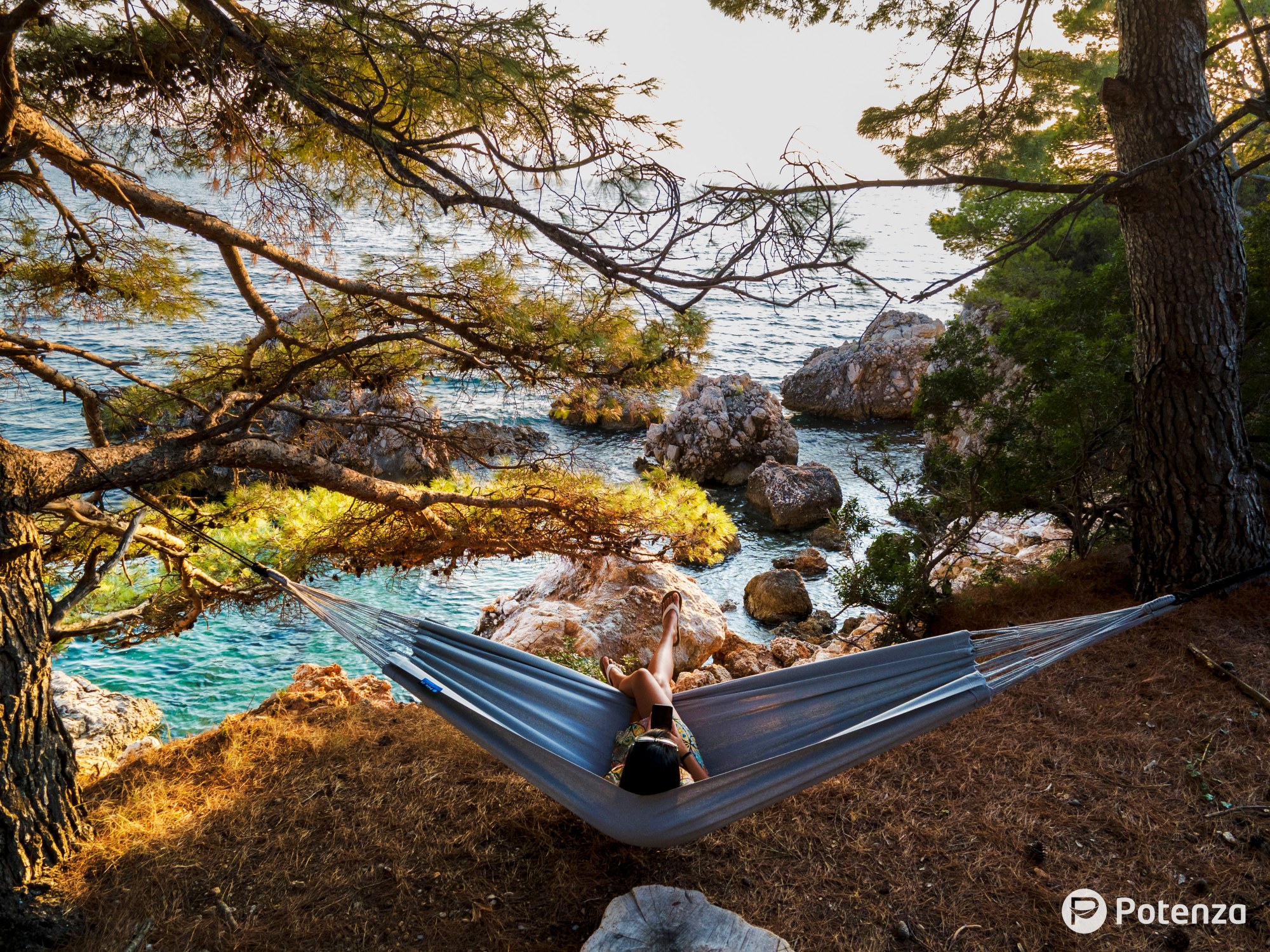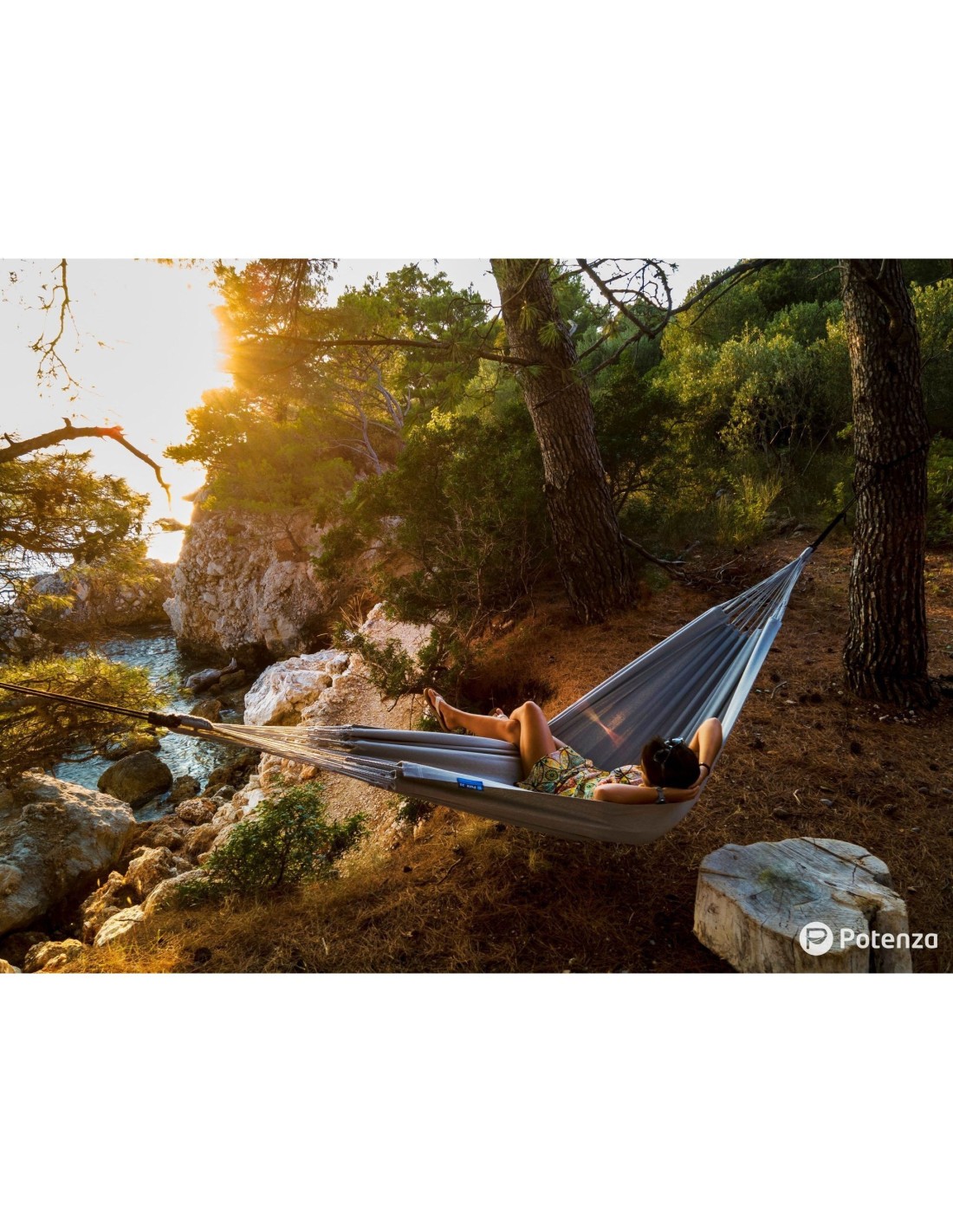 Den Mindestabstand für eine Hängematte ohne Spreizstab berechnest du, indem du etwa 10 % von ihrer Gesamtlänge abziehst.