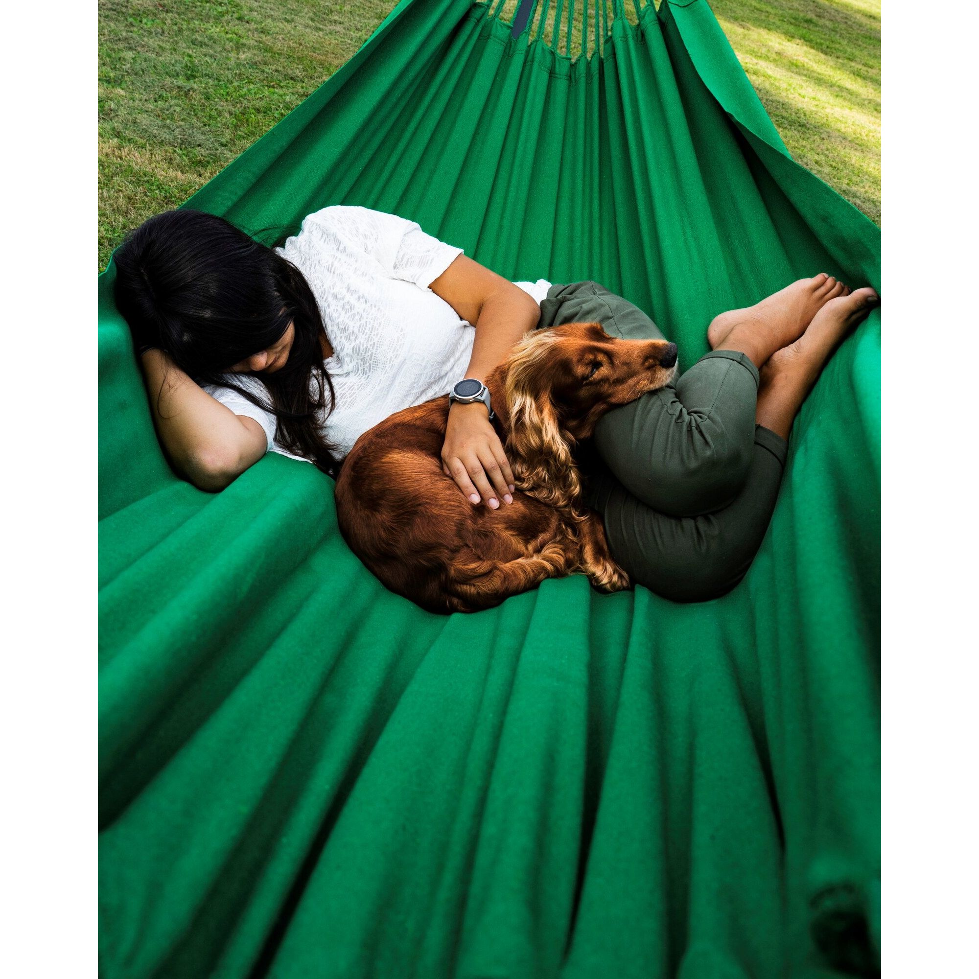 • Miniatura - Merida Klassische Hängematte aus Baumwolle 220x160cm, Belastbarkeit bis 200 kg (Ciemno zielony) Ciemno zielony