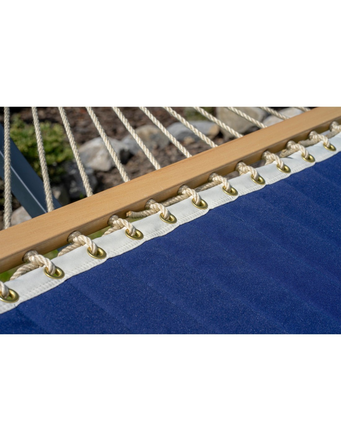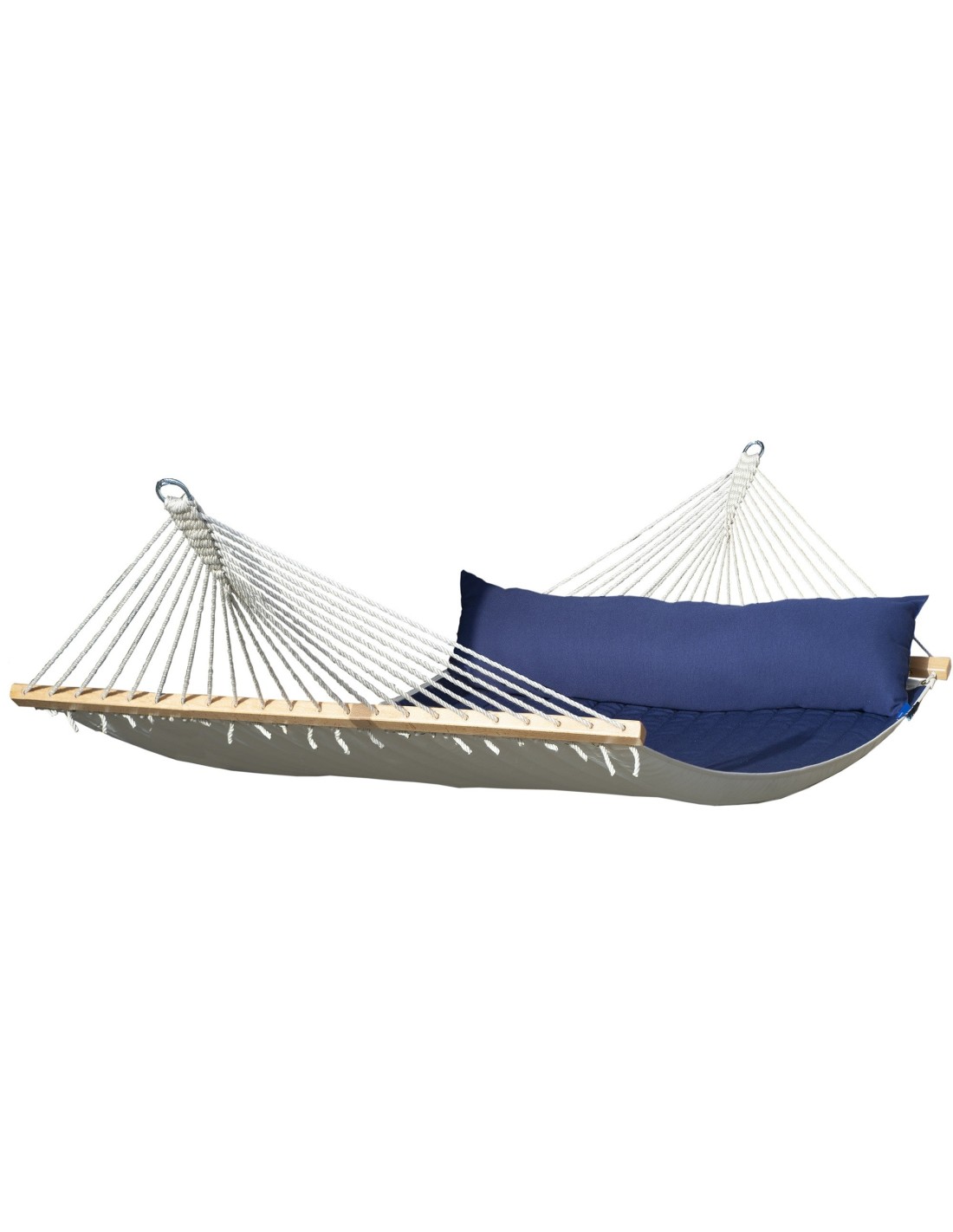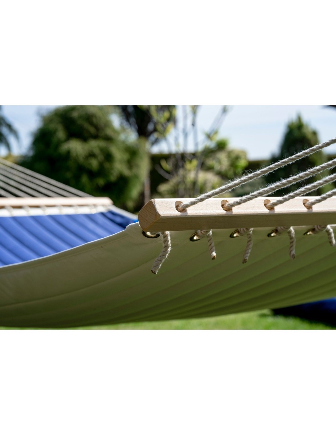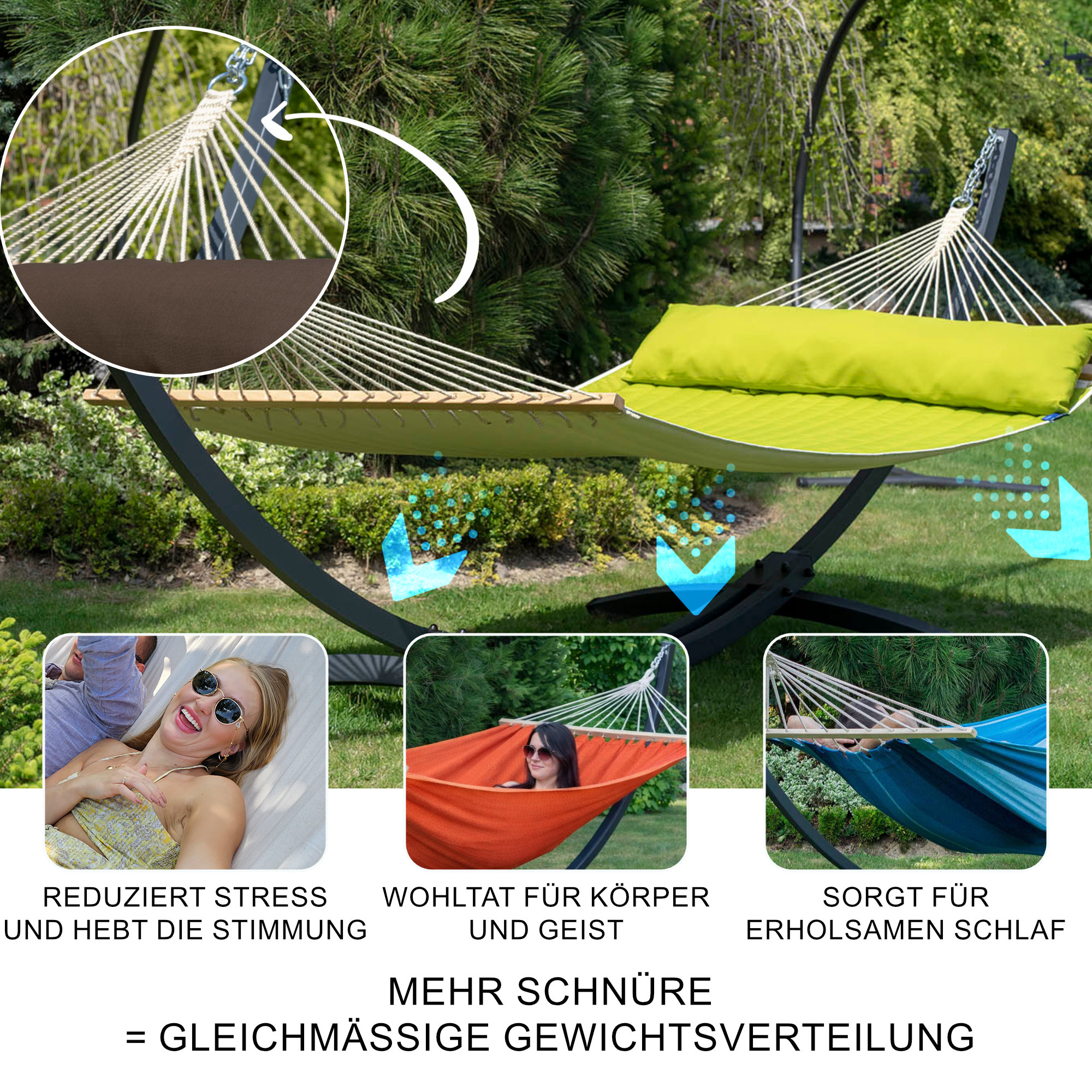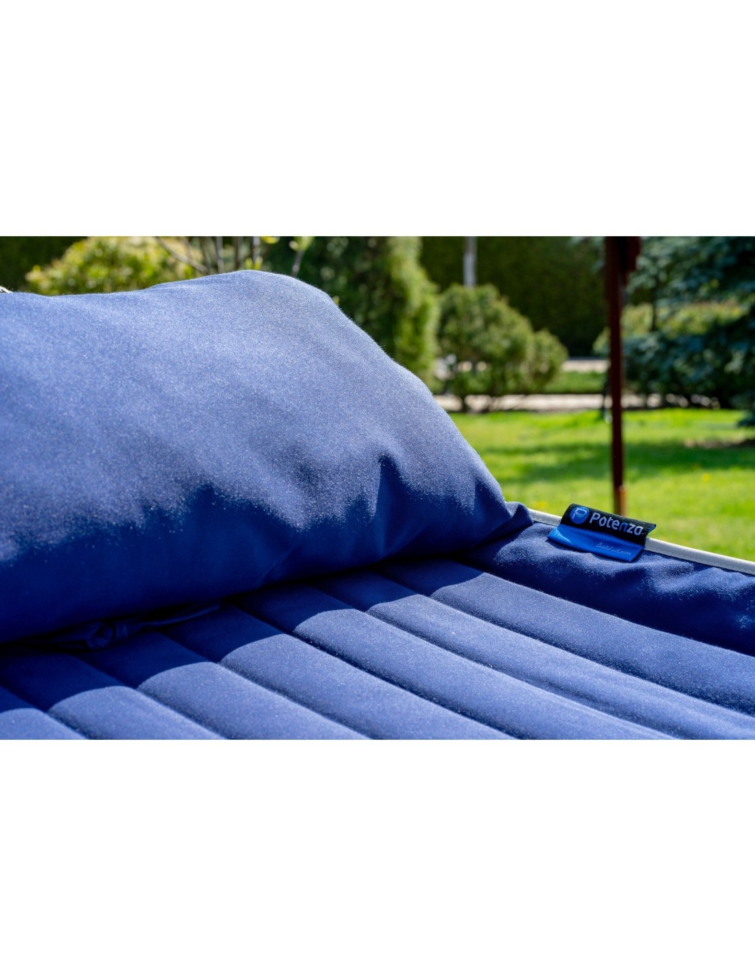 Diese doppelseitige, gepolsterte Hängematte ist besonders angenehm in der Nutzung und sorgt für höchsten Komfort beim Entspannen. Der weiche, gesteppte Stoff fühlt sich angenehm an und lädt zum gemütlichen Ausruhen ein.