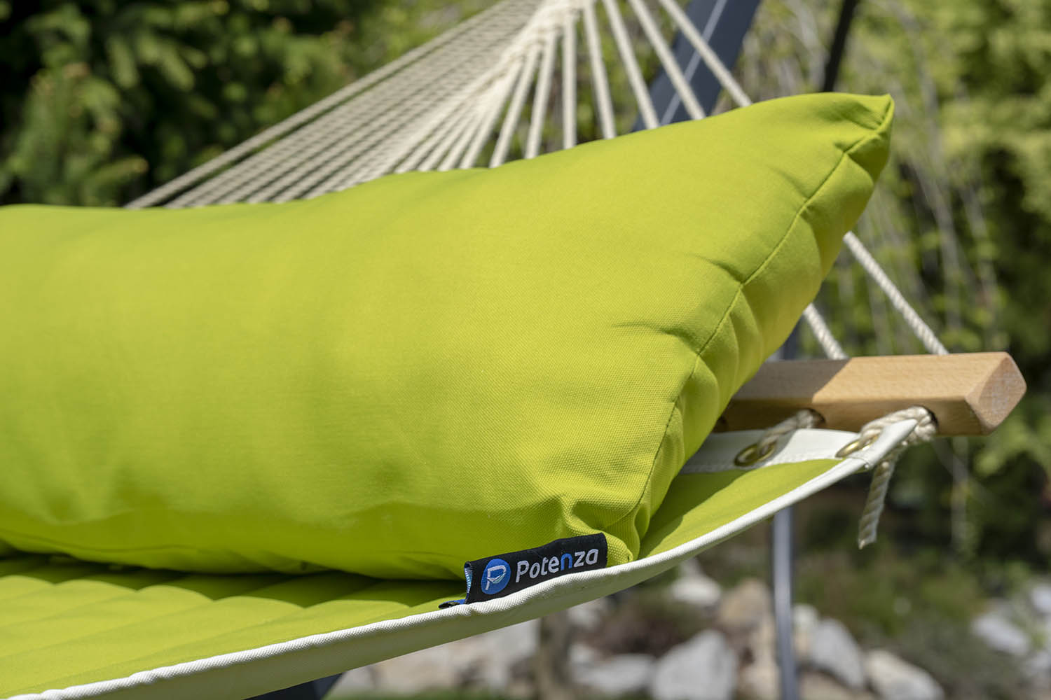 Eine Hängematte mit Kissen bietet maximalen Komfort beim Entspannen. Das Kissen lässt sich ganz einfach mit kleinen Bändchen befestigen oder abnehmen. Es sorgt für eine angenehme Unterstützung des Kopfes und macht den Aufenthalt in der Hängematte noch gemütlicher.