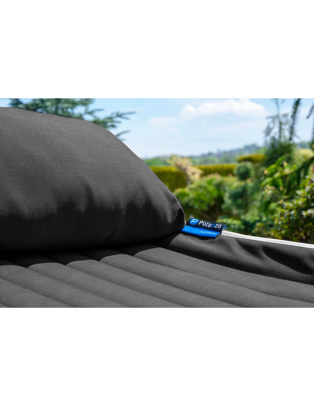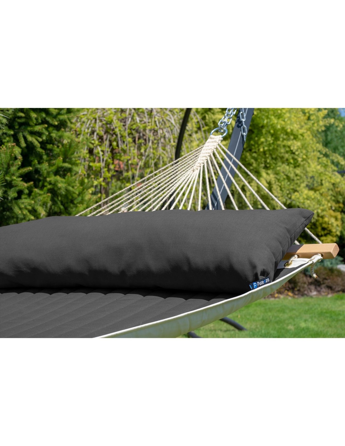 Diese doppelseitige, gepolsterte Hängematte ist besonders angenehm in der Nutzung und sorgt für höchsten Komfort beim Entspannen. Der weiche, gesteppte Stoff fühlt sich angenehm an und lädt zum gemütlichen Ausruhen ein.