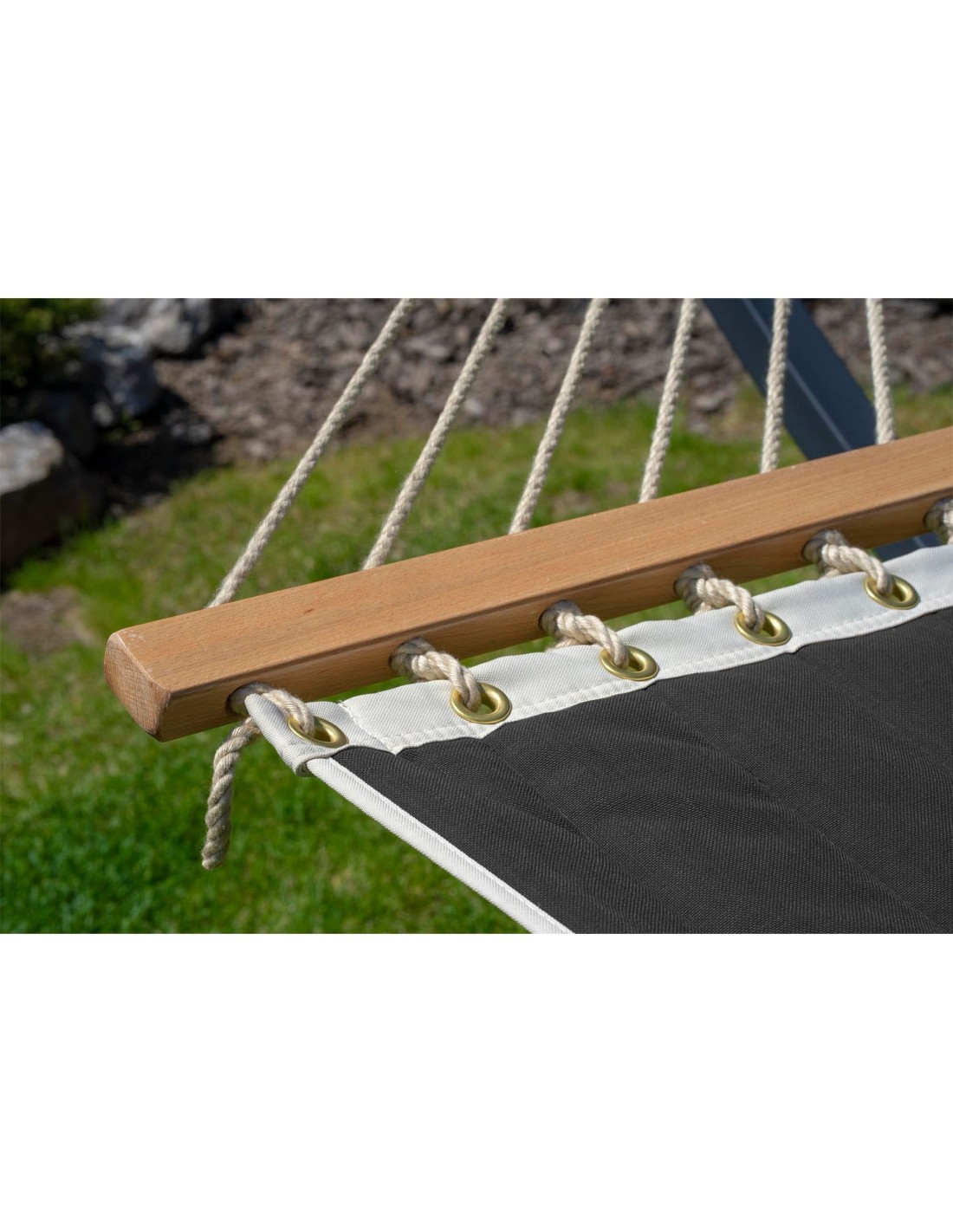 Eine Hängematte mit Spreizstab   ermöglicht das Entspannen in einer „offenen“ Hängematte. Sie ist so bequem wie ein Liegestuhl – man kann sich darin sonnen, ein Buch lesen oder einfach nur ausruhen. Wenn zwei Personen darin liegen, hat jeder seinen eigenen Platz.