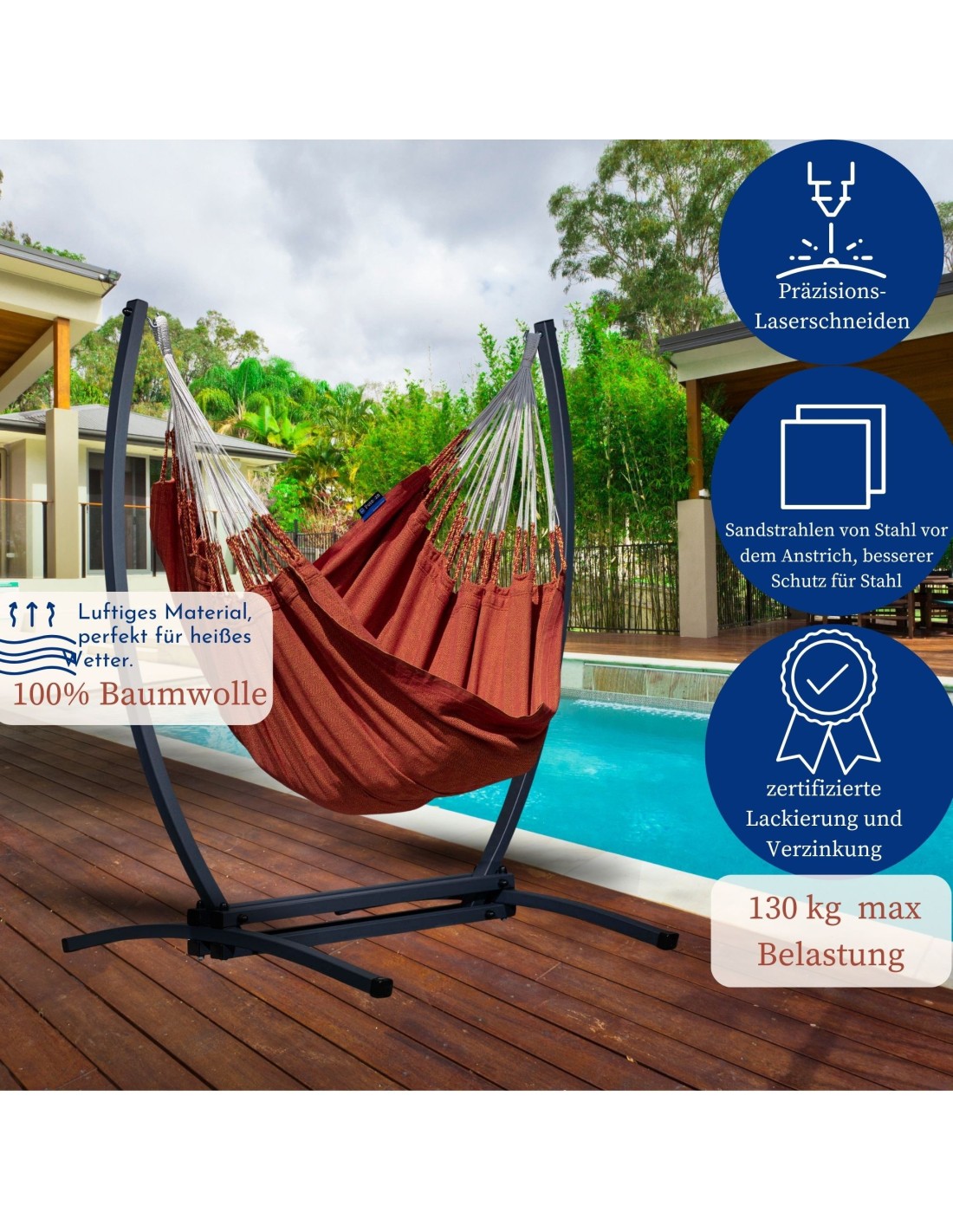 Ein robustes Gazela Stahlgestell sorgt für sicheren Halt und angenehme Entspannung im Hängestuhl.