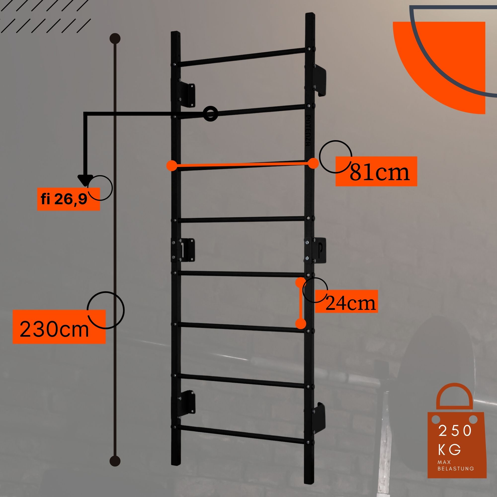 • Breite der Sprossenwand: 81 cm