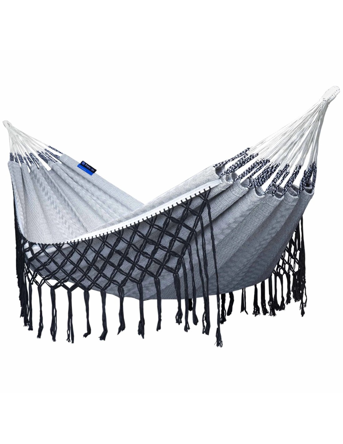 • Miniatura - Medelin Double Boho Makramee Fransen Hängematte 230x160 cm, Belastbarkeit bis 200 kg (B&W) B&W
