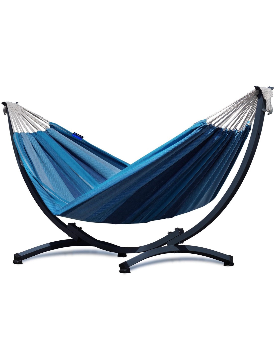 Die Hängematte kann überall aufgestellt werden – ganz ohne Bohren oder Bäume. Dank des Gewichts von nur 17 kg lässt sich das Gestell leicht versetzen.