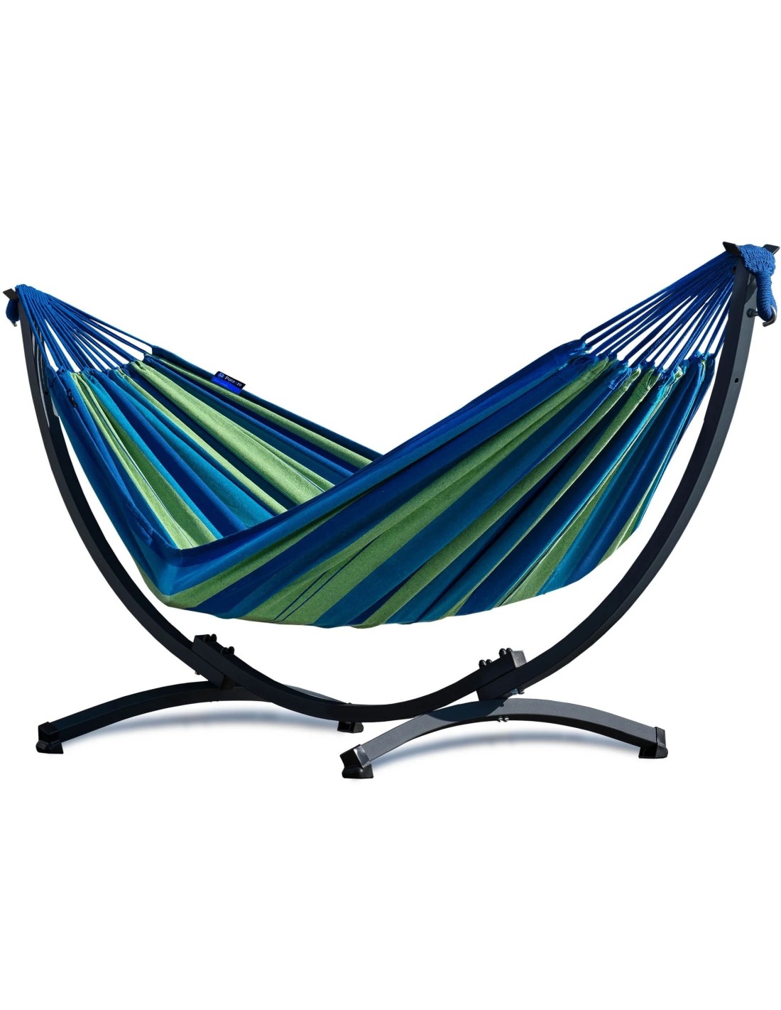 Die Hängematte kann überall aufgestellt werden – ganz ohne Bohren oder Bäume. Dank des Gewichts von nur 17 kg lässt sich das Gestell leicht versetzen.