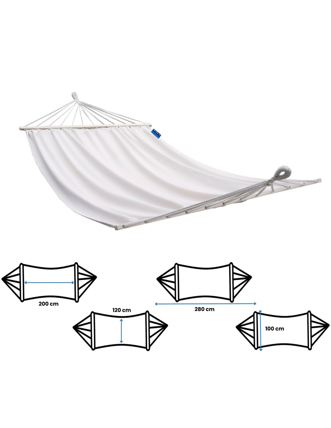 Die Gesamtlänge der Hängematte beträgt 280 cm.