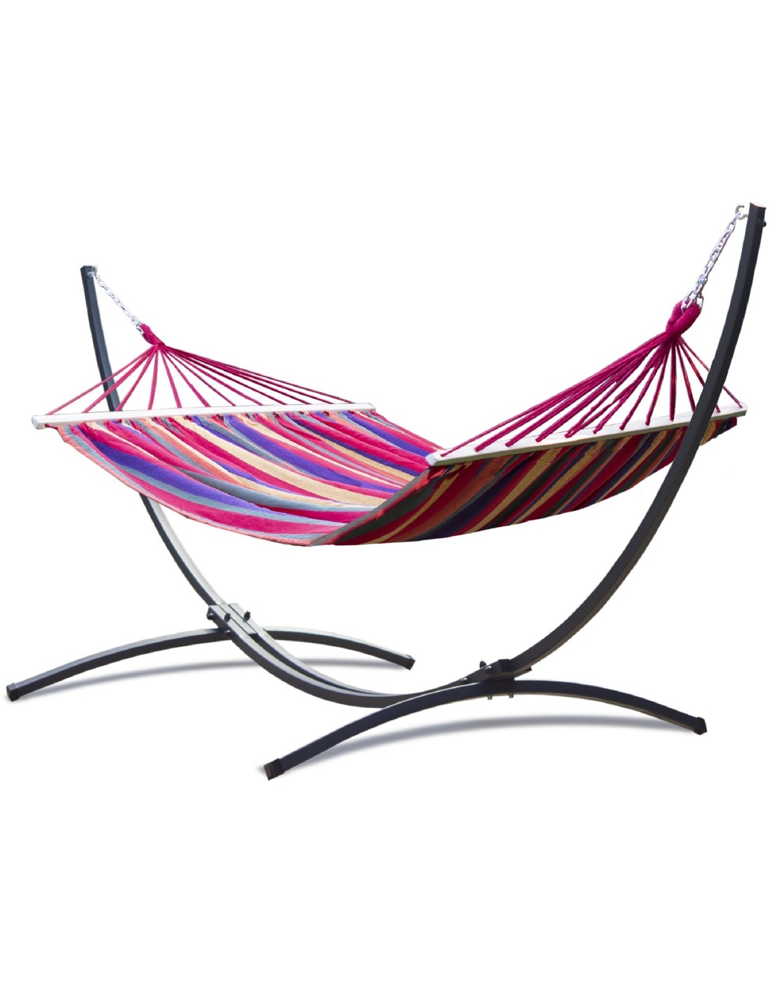 Eine Hängematte mit Spreizstab   ermöglicht das Entspannen in einer „offenen“ Hängematte. Sie ist so bequem wie ein Liegestuhl – man kann sich darin sonnen, ein Buch lesen oder einfach nur ausruhen. Wenn zwei Personen darin liegen, hat jeder seinen eigenen Platz.
