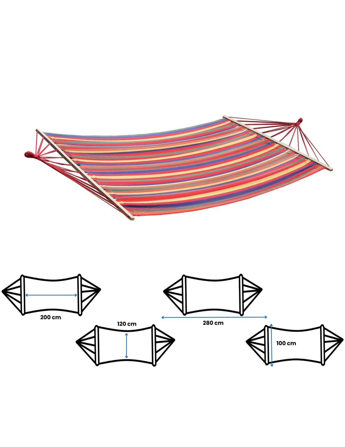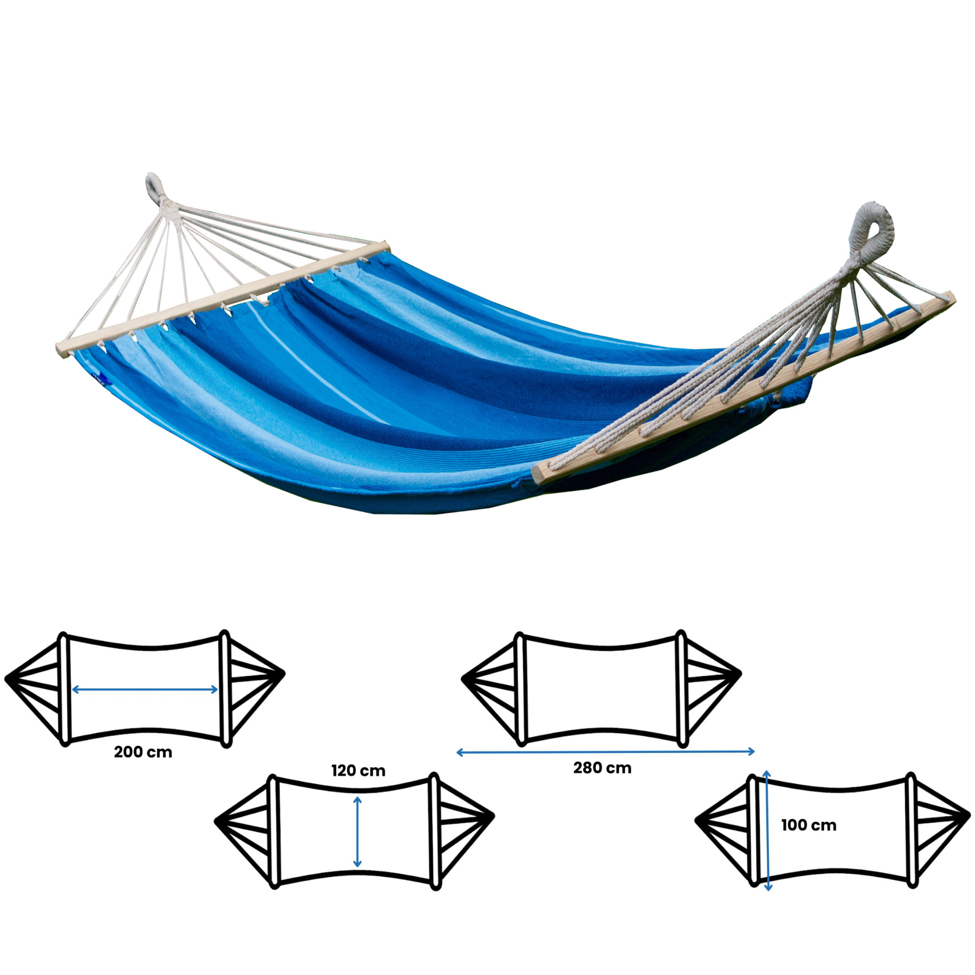 Die Gesamtlänge der Hängematte beträgt 280 cm.